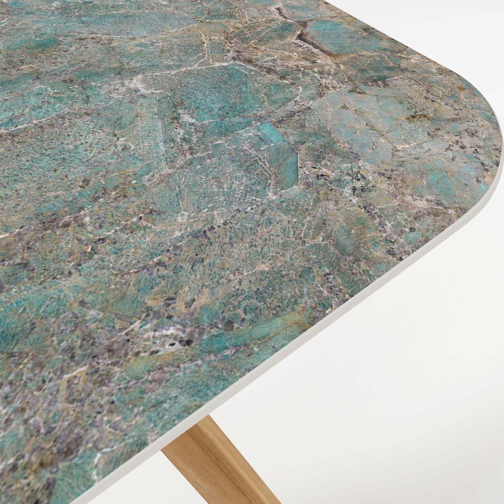 La base in legno aggiunge un tocco di naturalezza e calore, creando un contrasto affascinante. Questa combinazione non solo è esteticamente piacevole ma garantisce anche stabilità e durata. Ideale per ambienti esterni, come giardini, terrazzi o aree piscina, questo tavolo diventa il centro delle attenzioni, perfetto per accogliere ospiti e godersi momenti di relax all'aria aperta.