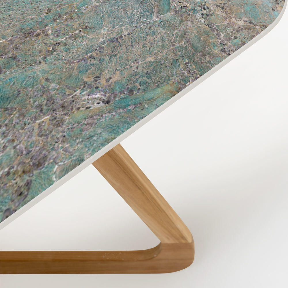 Questo esclusivo tavolo da esterno, è un vero e proprio gioiello di design che combina l'eleganza del legno con la modernità della ceramica. Il piano del tavolo, realizzato in ceramica di alta qualità con meravigliose sfumature verde anticato, offre un'eccezionale resistenza agli agenti atmosferici e una bellezza che si mantiene nel tempo.