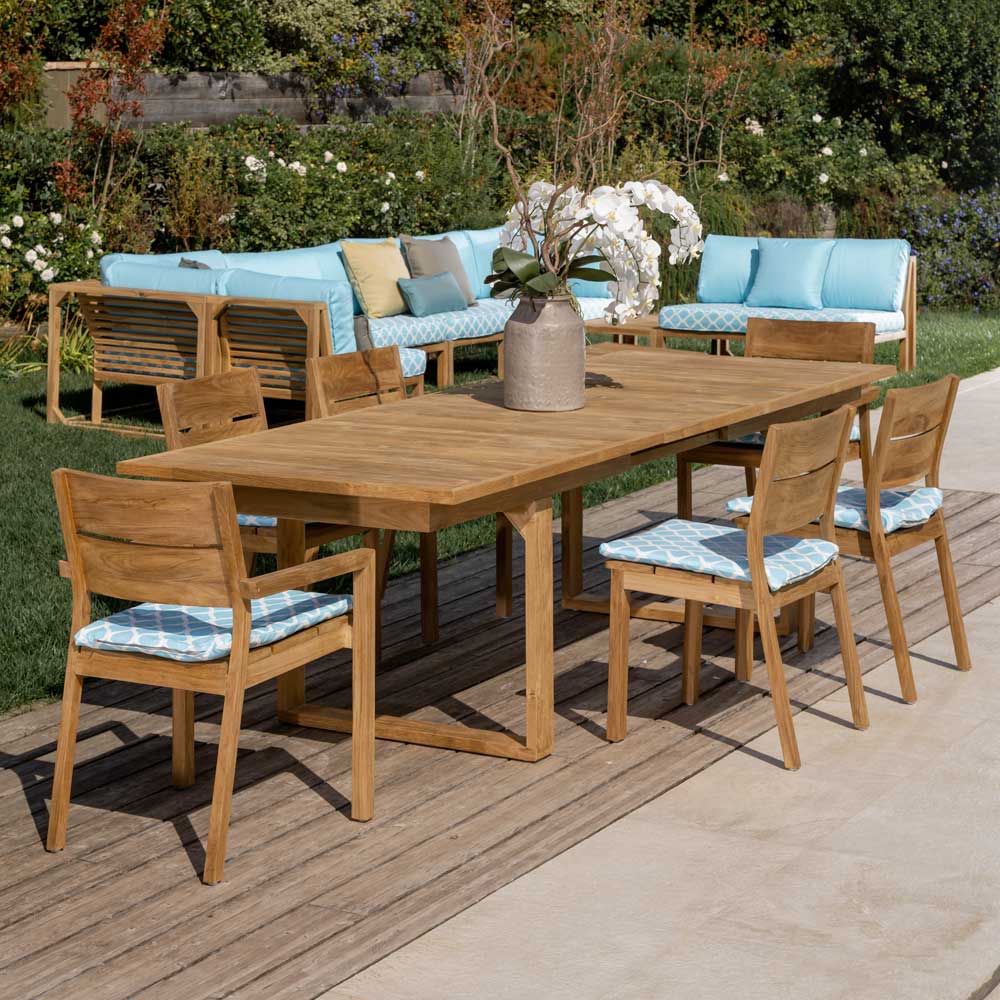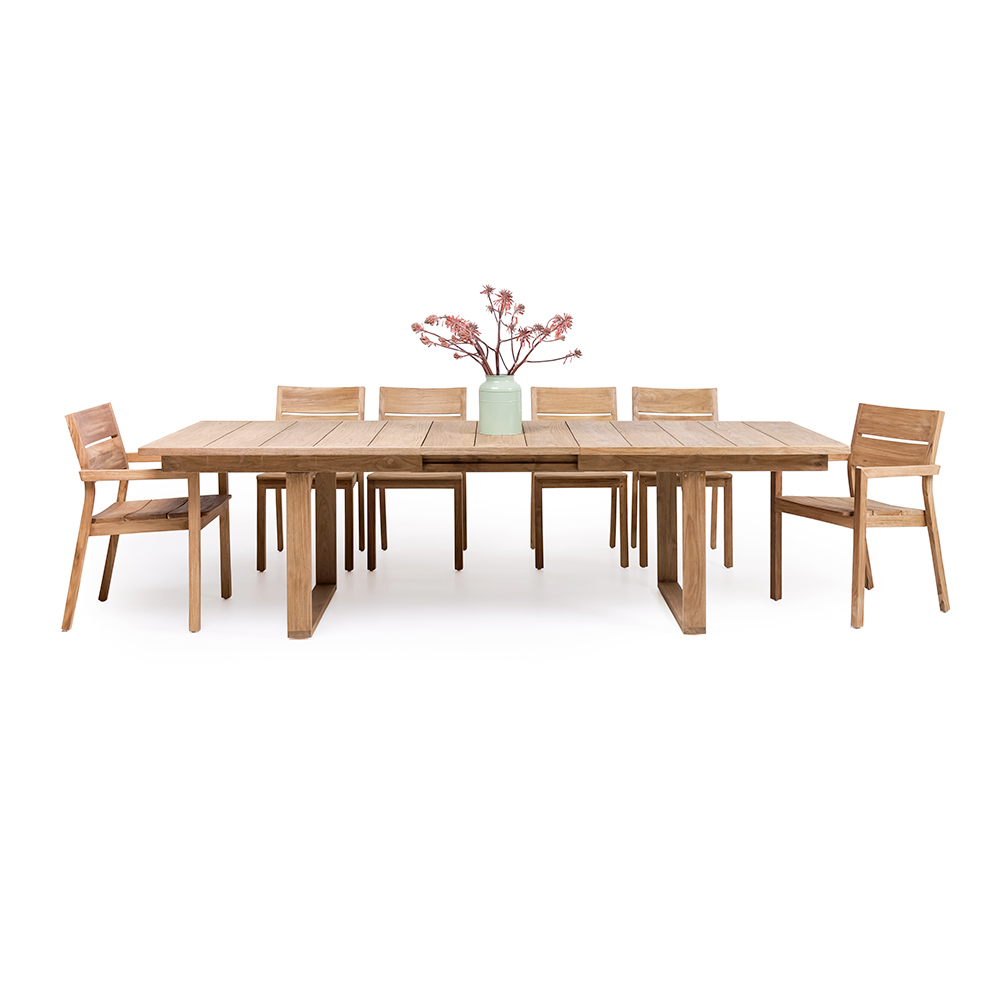 Tavolo da giardino allungabile a 270 cm in legno teak finitura naturale spazzolata .