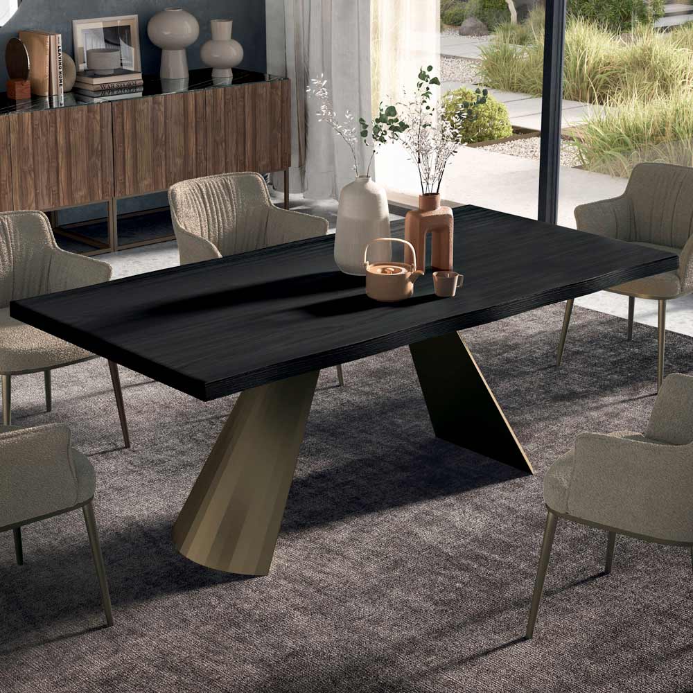 ottima qualità Made in Italy. Grazie alla forma del basamento e alle finiture disponibili, questo tavolo è il