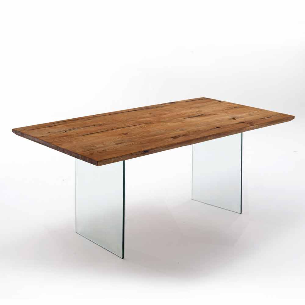 Tavolo fisso in legno massello e gambe in vetro temperato Tito