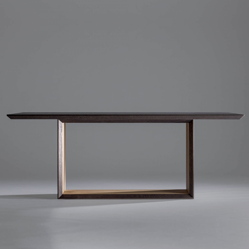 Il tavolo è plasmato da forme avveniristiche, che danno luce all'essenza, conferendogli linee e prospettive distintive. La robustezza dei materiali si traduce in un impulso creativo forgiato da abili mani italiane, raggiungendo nuovi traguardi qualitativi ed estetici. I mobili diventano un mezzo per raggiungere lo spazio personale ideale.