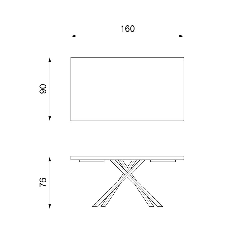 - Lunghezza: 160 cm x Profondità: 90 cm x Altezza: 76 cm
