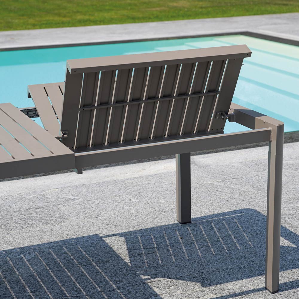 Tavolo da esterno allungabile a 240 cm realizzato in alluminio dal design moderno.