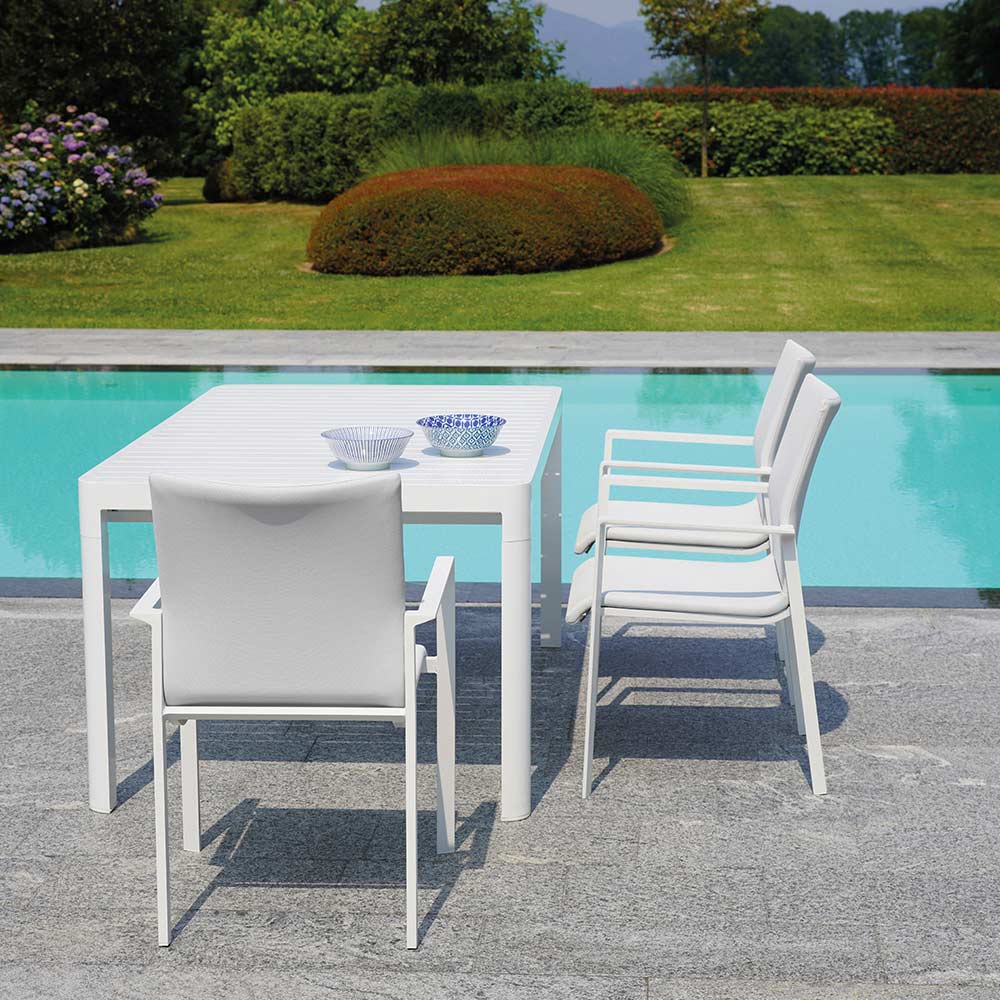linee essenziali dal sapore estivo ideali per completare ed arricchire ogni stile di arredamento, dal classico giardino o terrazzo domestico fino all'ambiente contract più esclusivo. Questo tavolo risulta contemporaneo e funzionale, perfetto per occasioni formali ed informali in cui conquista il centro dell'attenzione grazie al suo