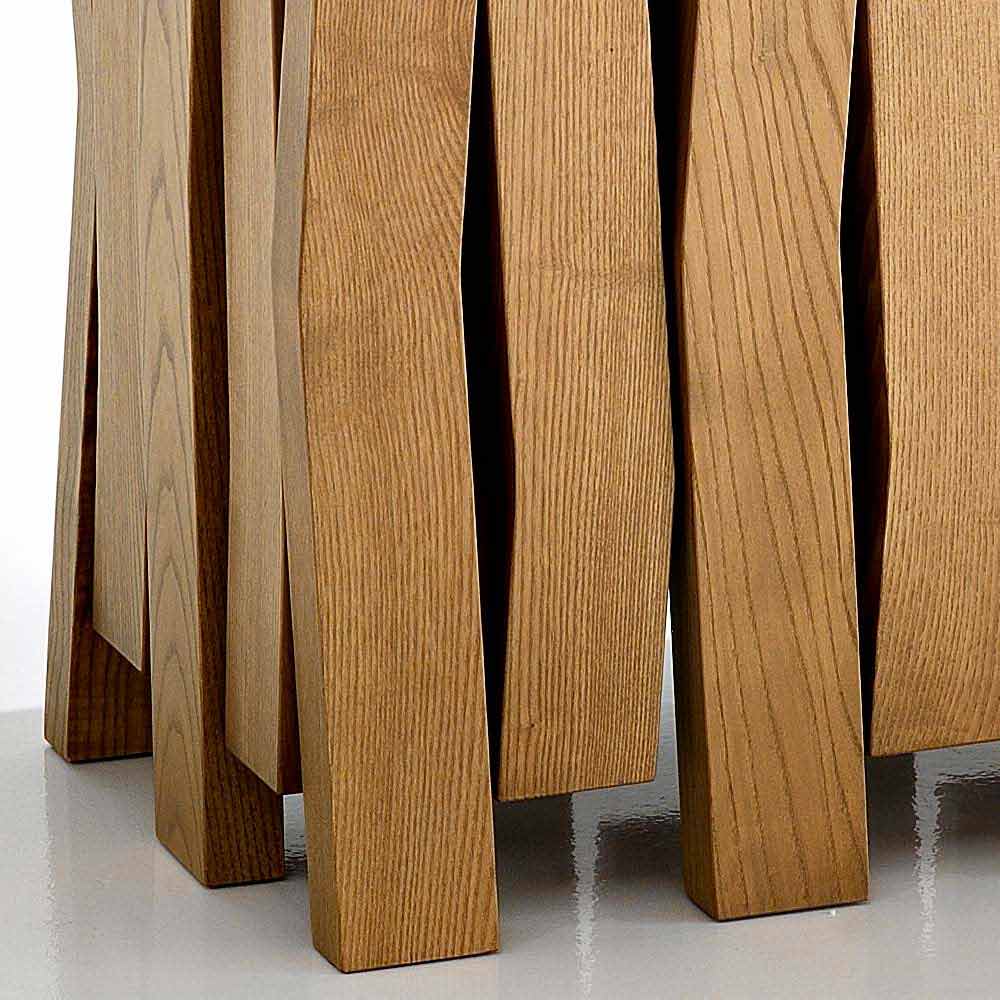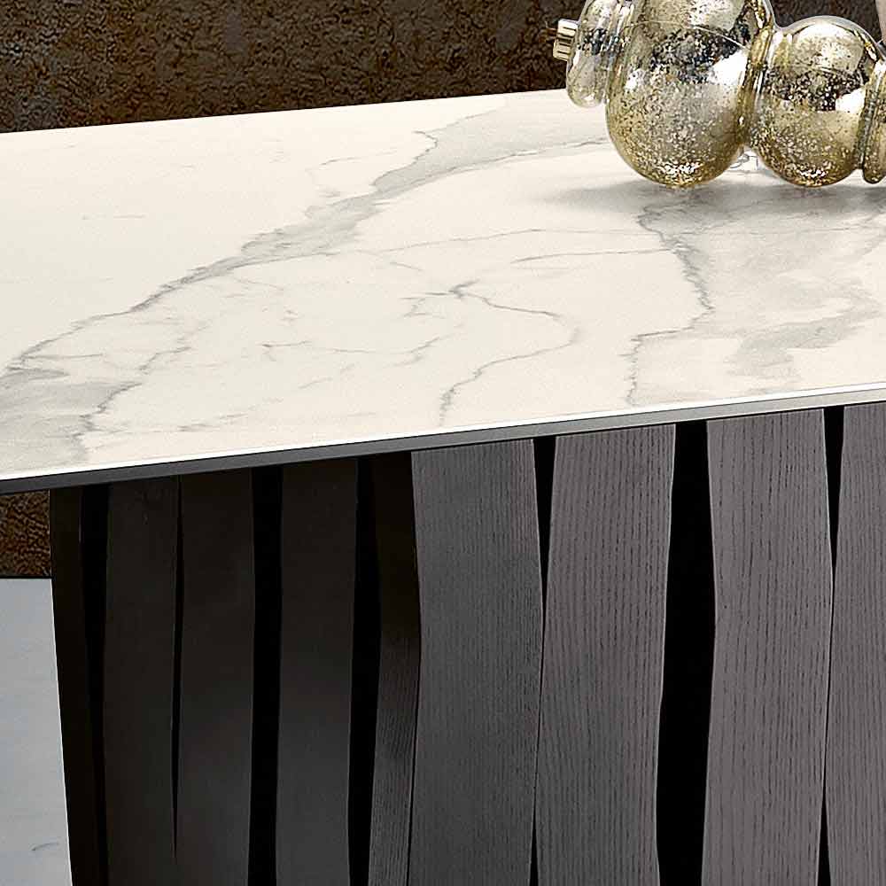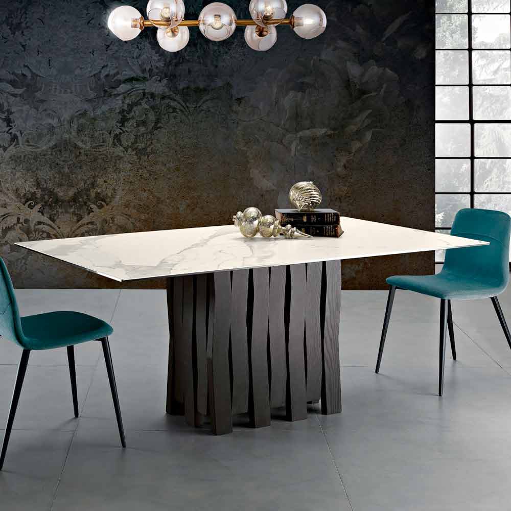 Egisto è un raffinato tavolo fisso realizzato in Italia con piano in vetroceramica e base in legno massello di frassino.