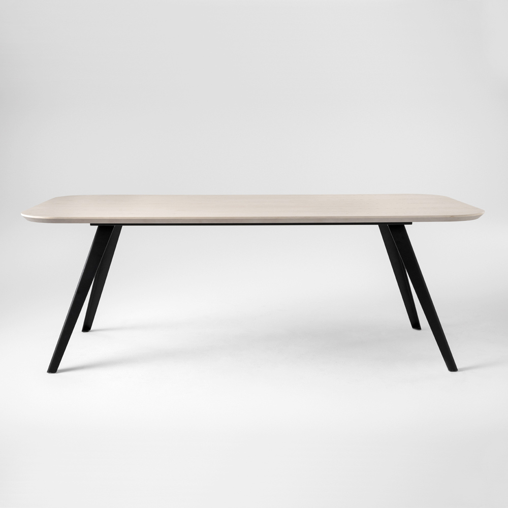 Tavolo da pranzo di alta qualità in metallo con piano in frassino Made in Italy.