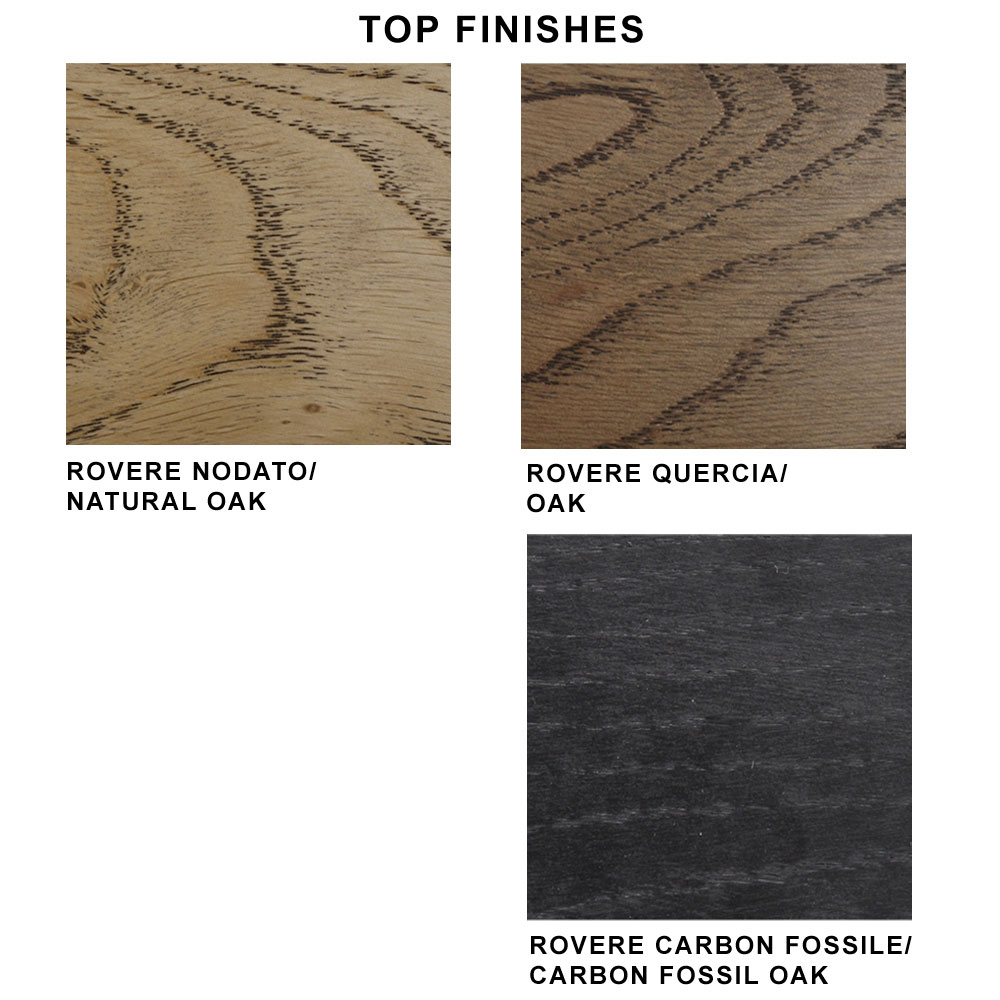 Il piano del tavolo può essere personalizzato con diverse finiture a campione o laccature RAL.
