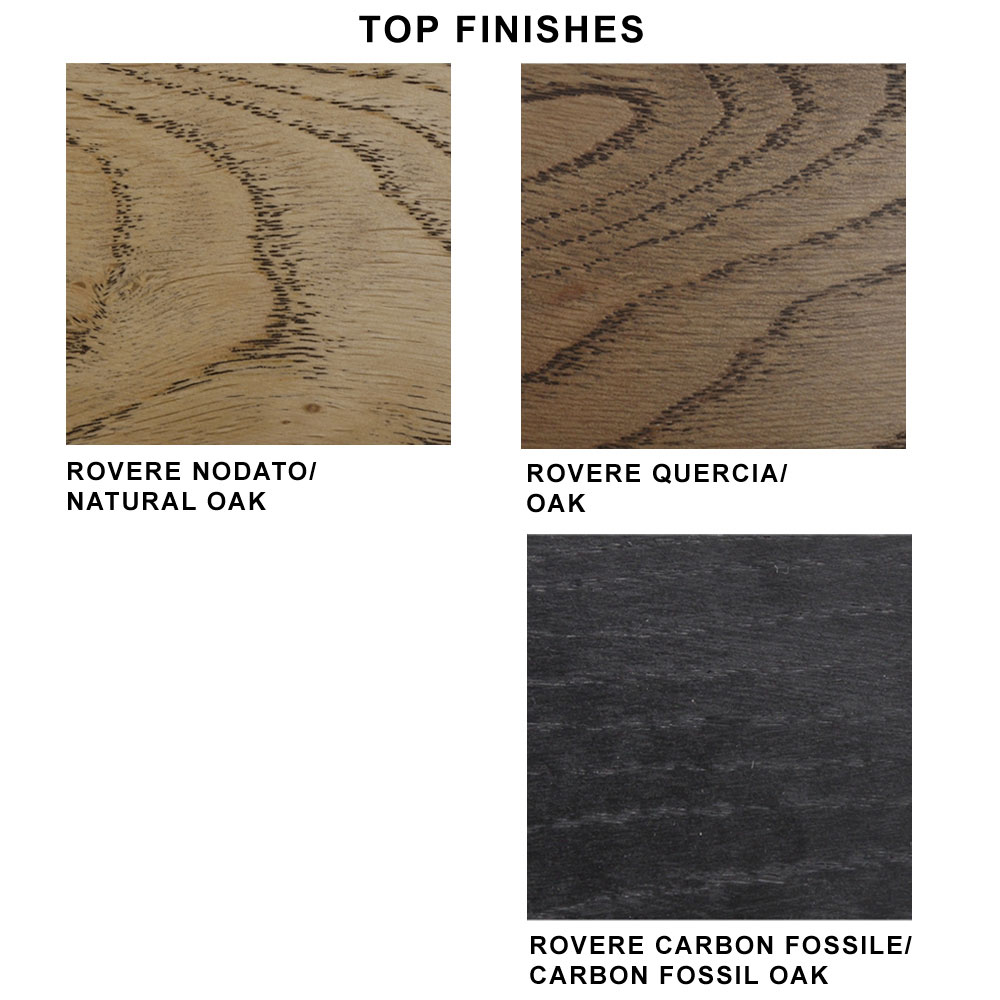Il piano del tavolo può essere personalizzato con diverse finiture a campione o laccature RAL.