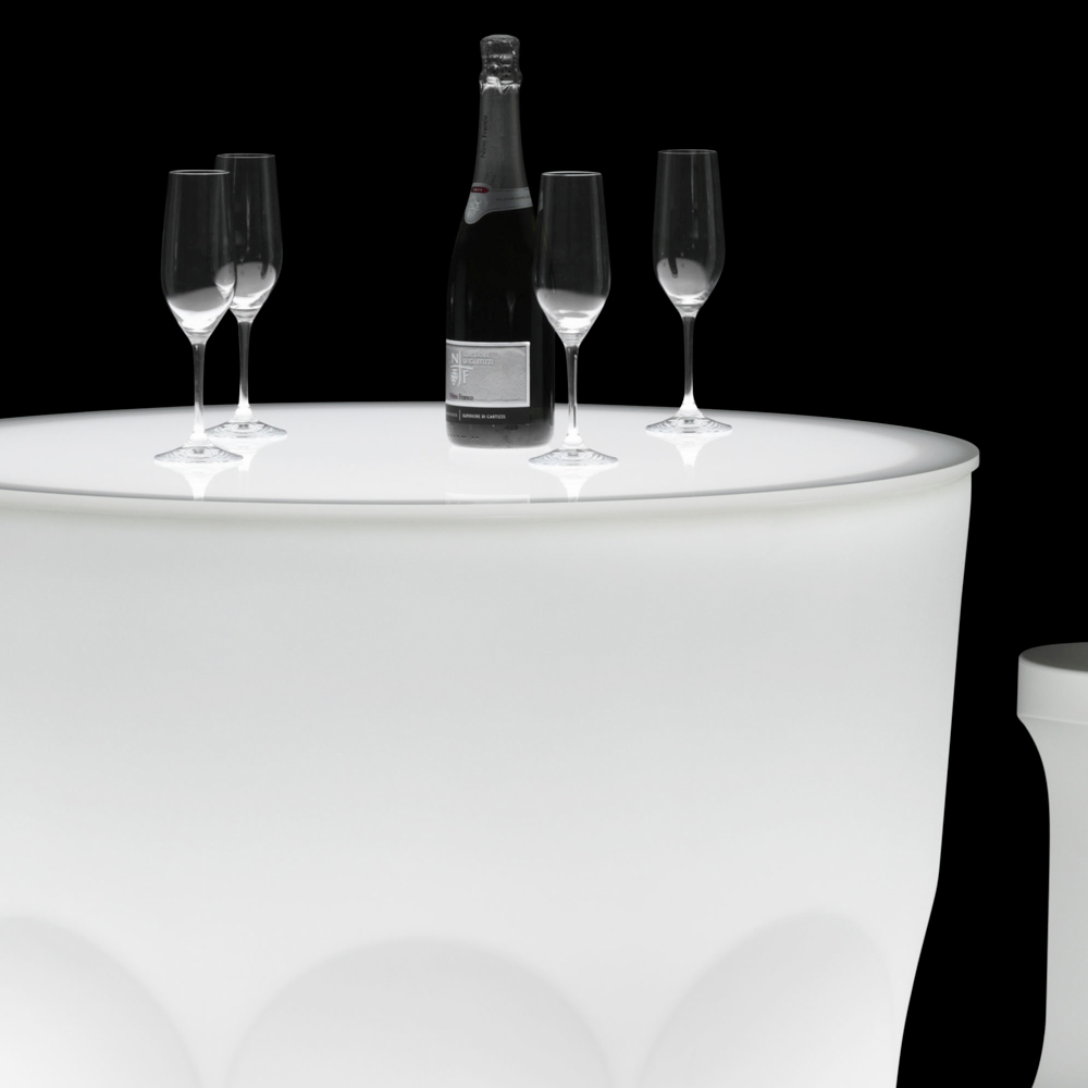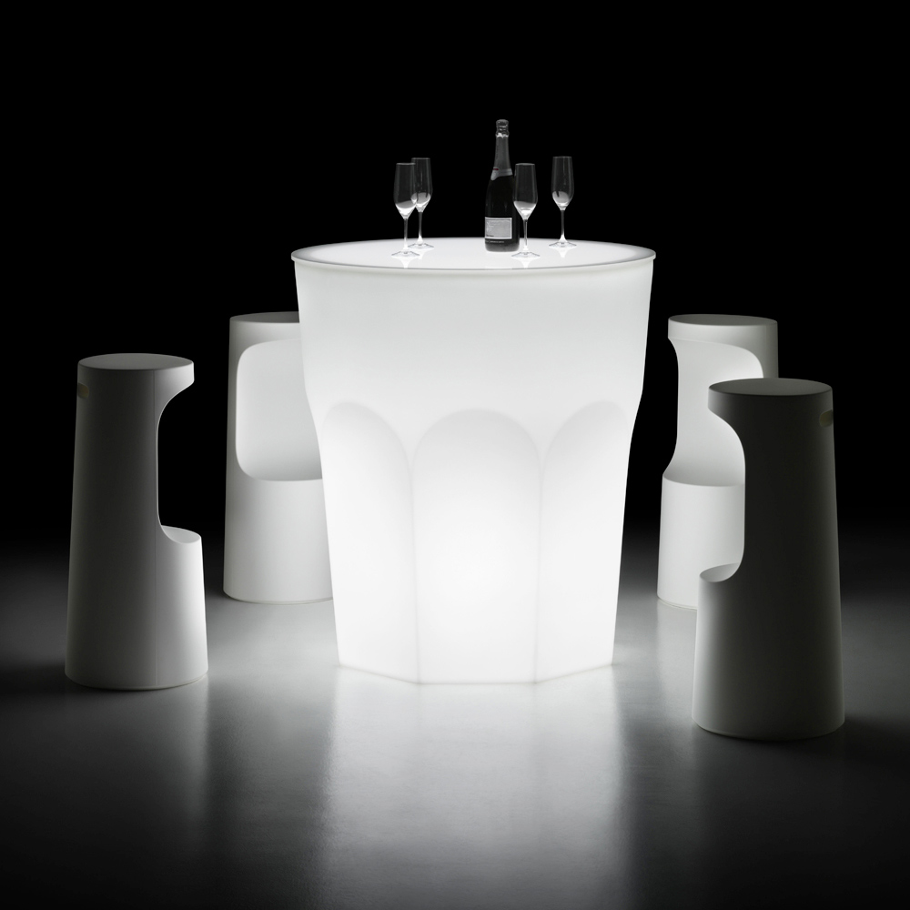 Tavolo luminoso da esterno di design in polietilene con luce LED Made in Italy.