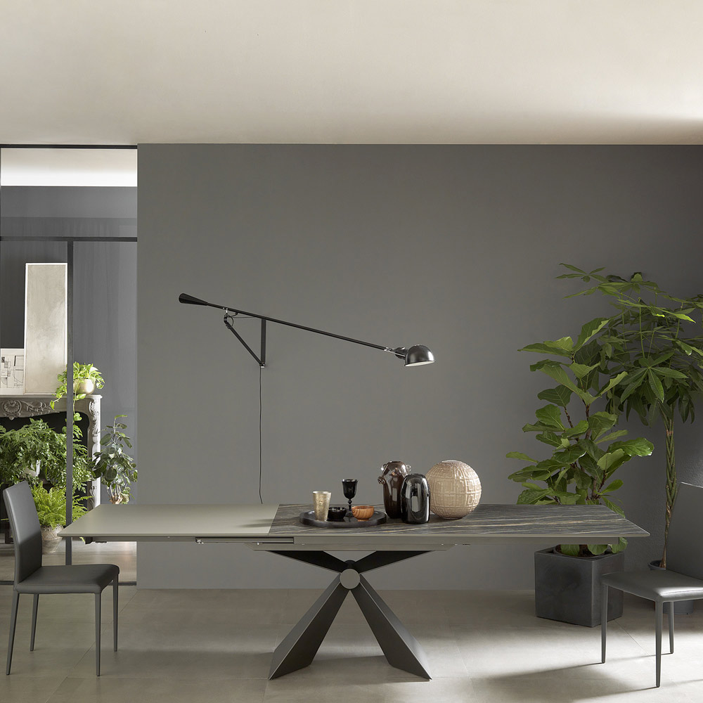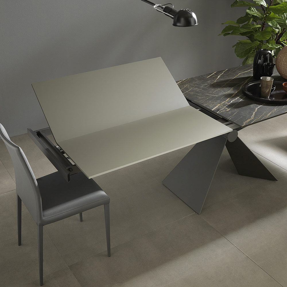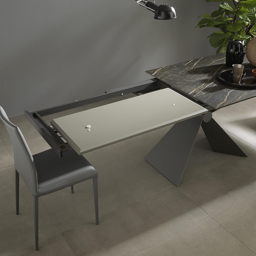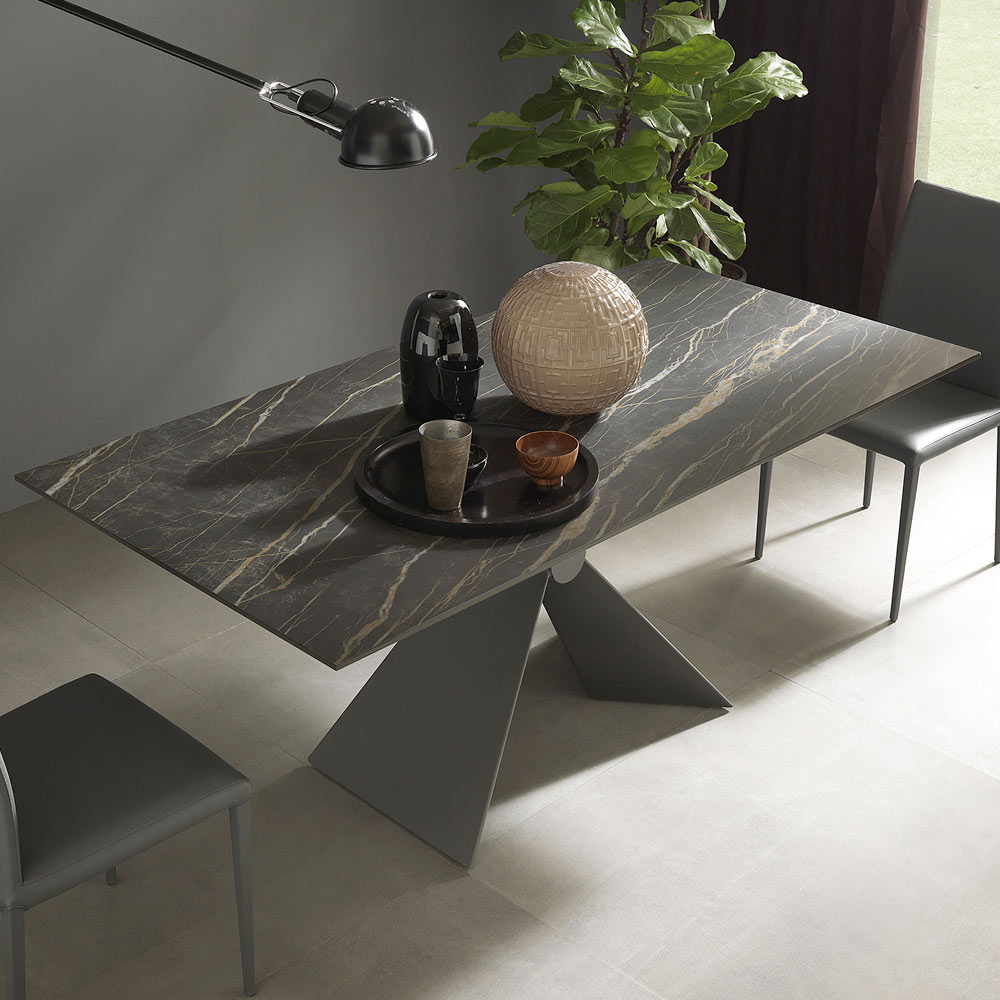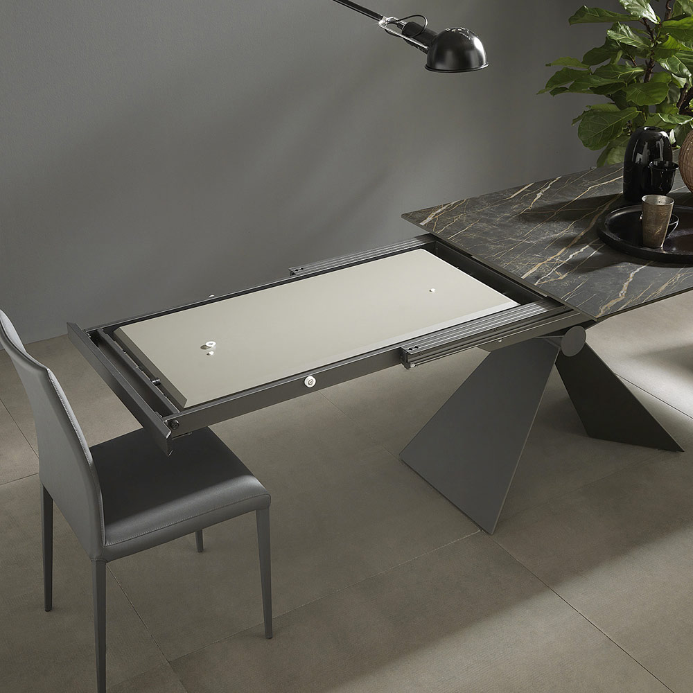 Tavolo da pranzo allungabile moderno in ceramica e metallo Made in Italy.