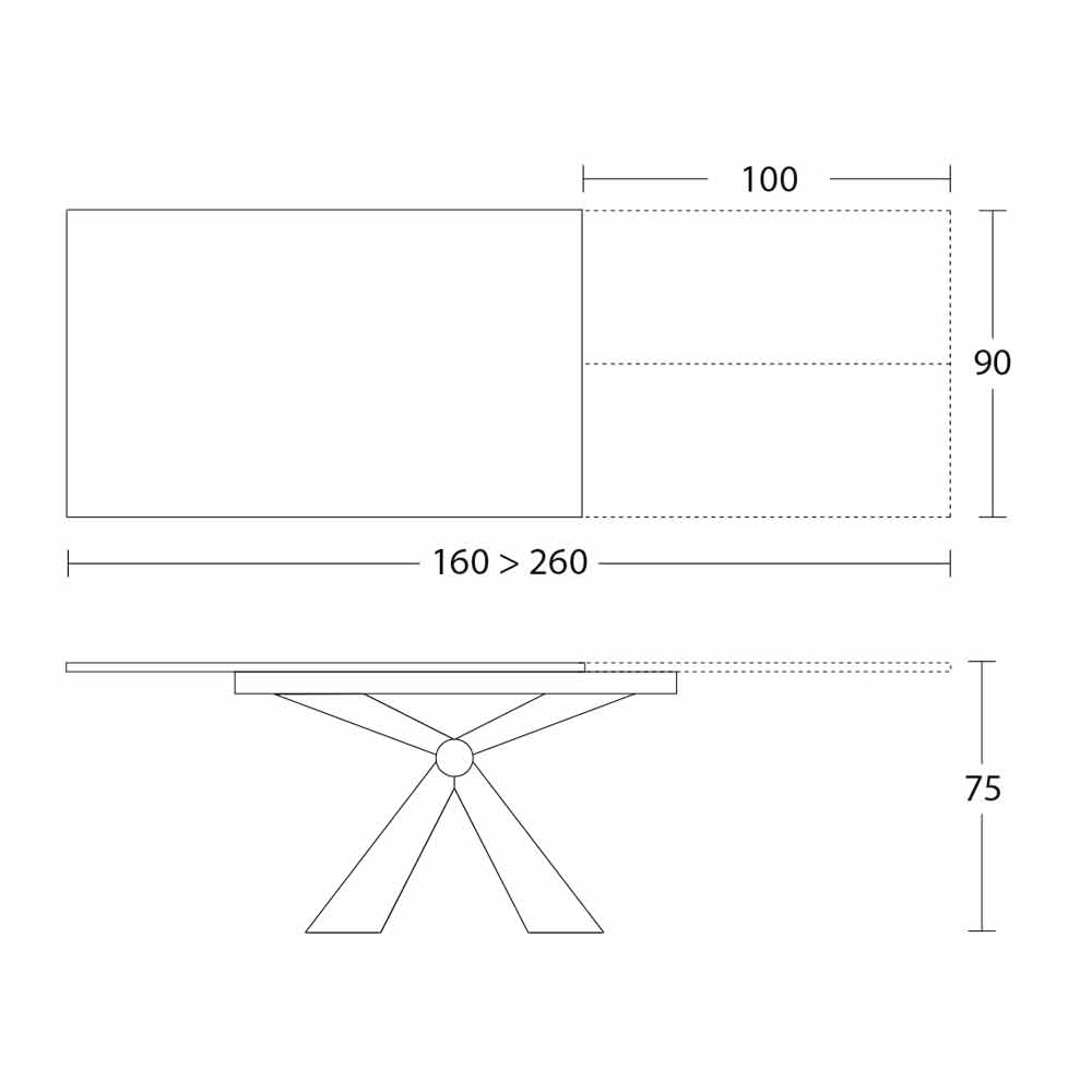 N.B.: le allunghe non sono della stessa finitura del piano, ma presentano una tonalità di colore abbinata ai dettagli e alle venature del piano in ceramica.