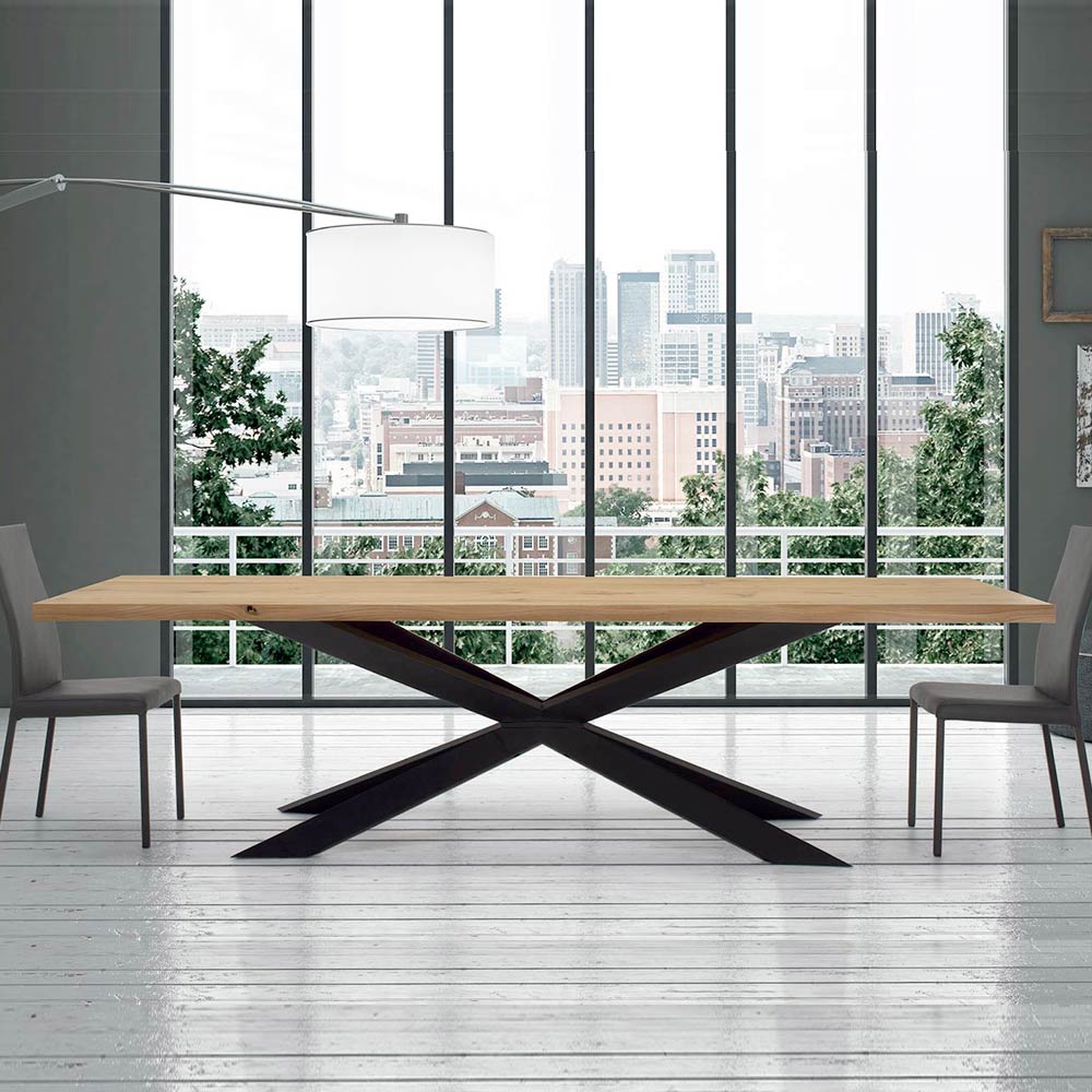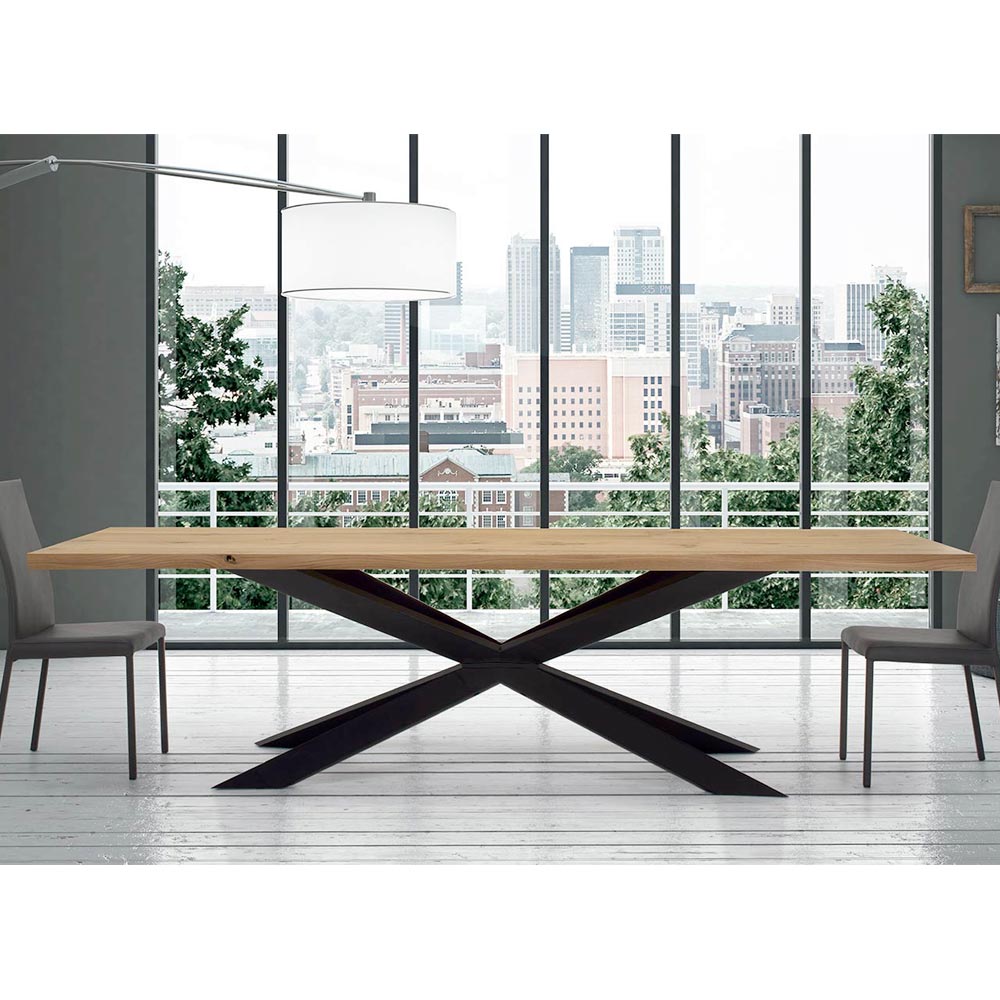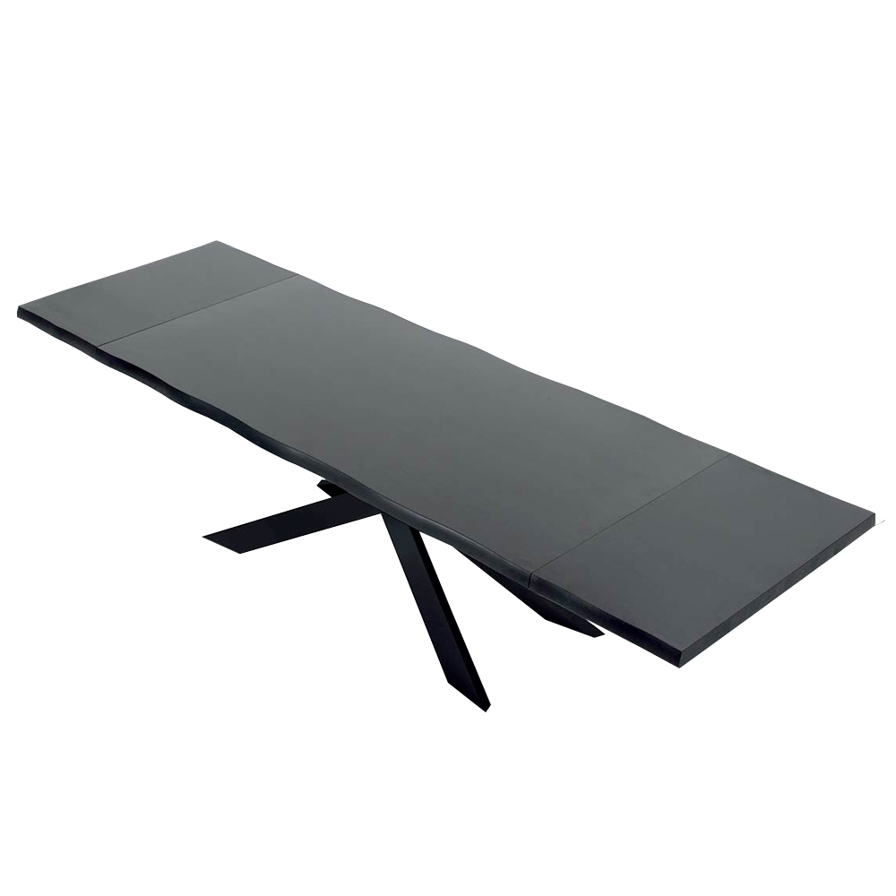 Tavolo da pranzo allungabile fino a 300 cm in legno impiallacciato e base in acciaio nero, made in Italy.
