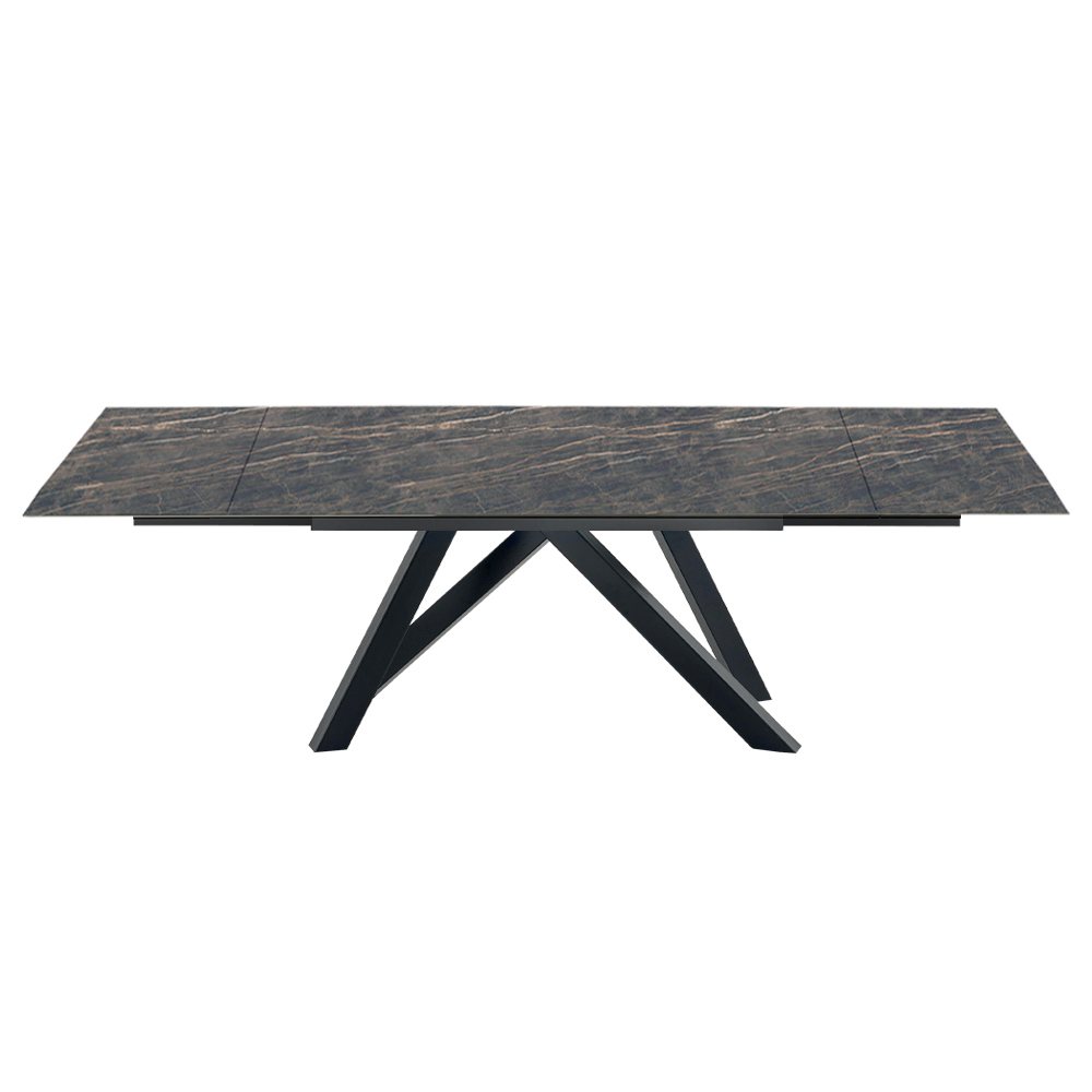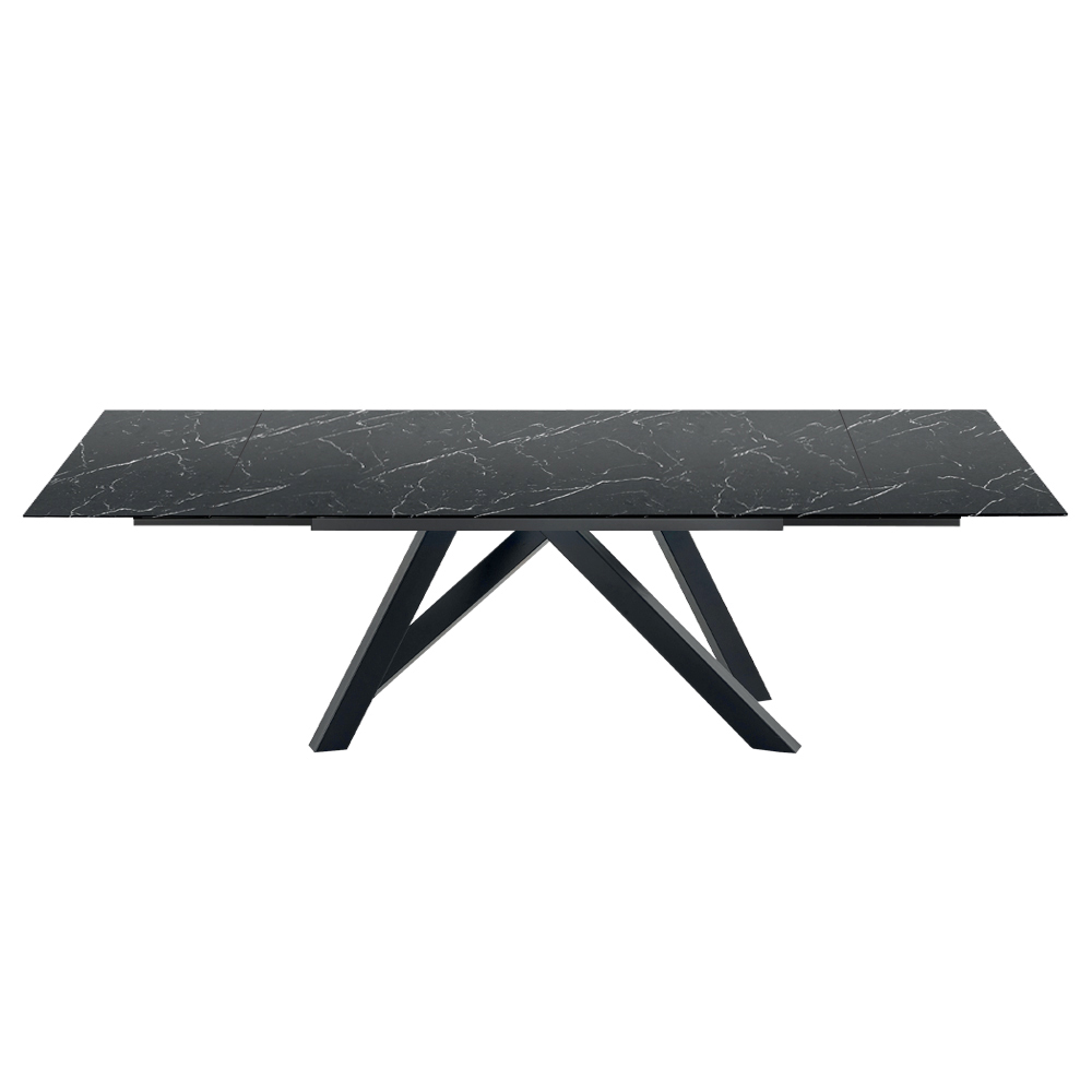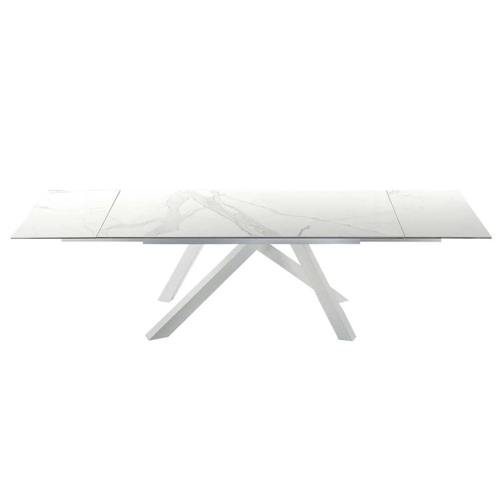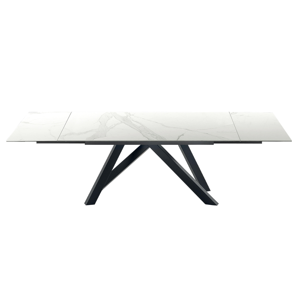 Tavolo in Laminam allungabile fino a 278 cm con base in acciaio bianco o grafite, prodotto in Italia.