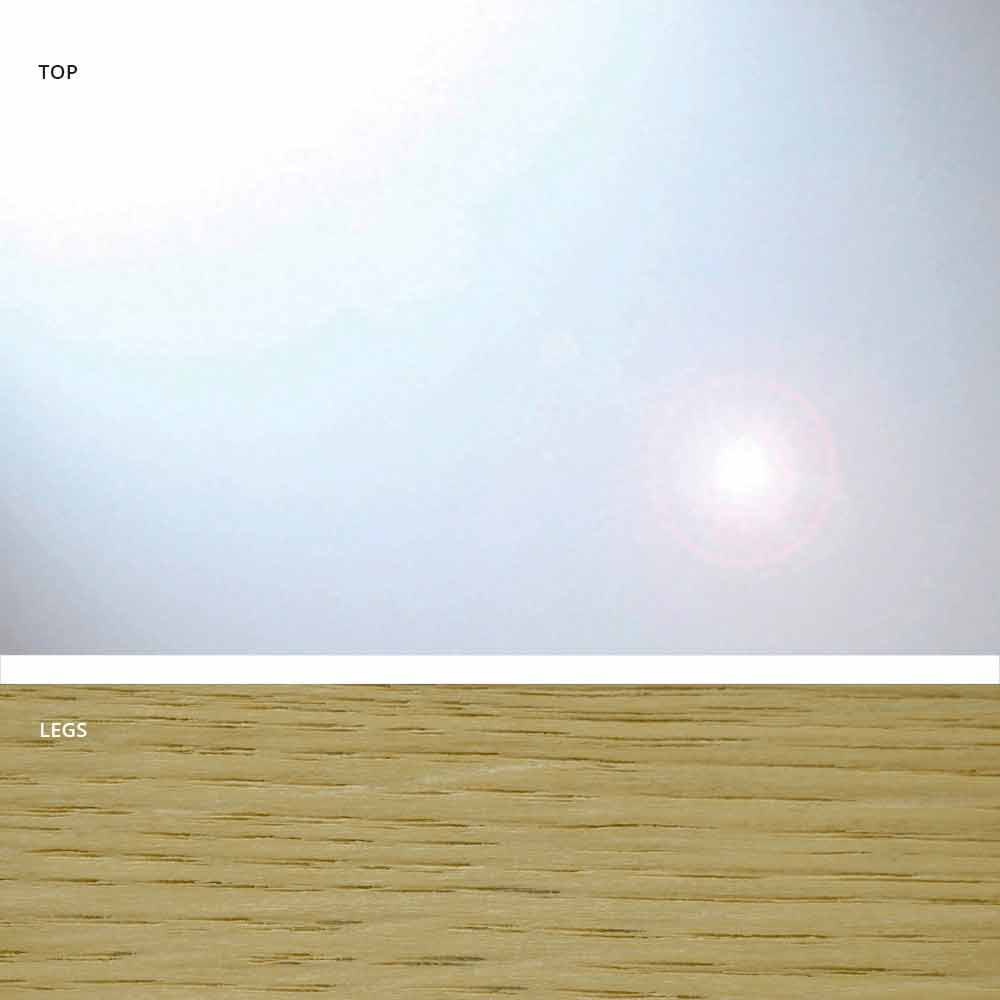 Realizzato esclusivamente in Italia con una base in rovere naturale oliato e cerato a mano e un piano sagomato in vetro trasparente temperato con uno spessore di 1,2cm.