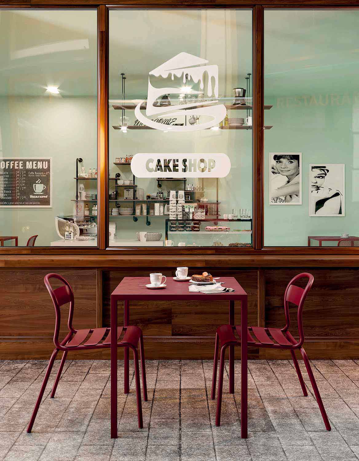 Il tavolino Benedict è caratterizzato da un design minimale ma elegante che si adatta al meglio ad ambienti domestici ma anche e soprattutto ad ambienti comuni come bar e ristoranti sia all'interno che all'esterno. Interamente realizzato in lamiera, Benedict è dotato di una struttura in tubolare metallico autolivellante che lo rende perfetto anche su pavimenti esterni lievemente dissestati. Disponibile in 6 varianti di colore e in due misure differenti.