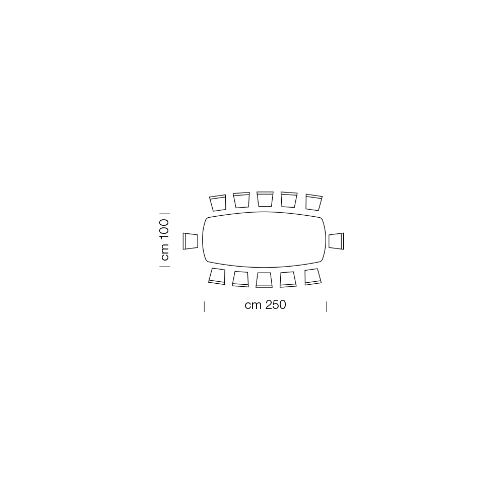 - L 250 x P 100 x H 73,5 cm (12 posti);