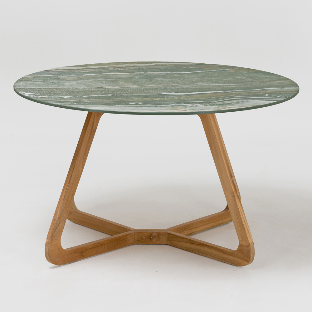 Tavolo da interno e esterno in ceramica e teak Made in Italy