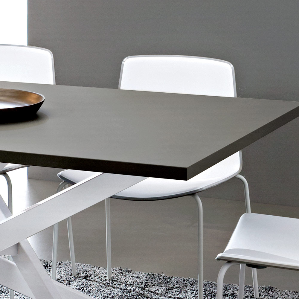 superficie resistente, piacevole al tatto ed estremamente opaca, elementi che oltre ad accrescere il lato funzionale del tavolo ne sottolineano e completano l'estetica.