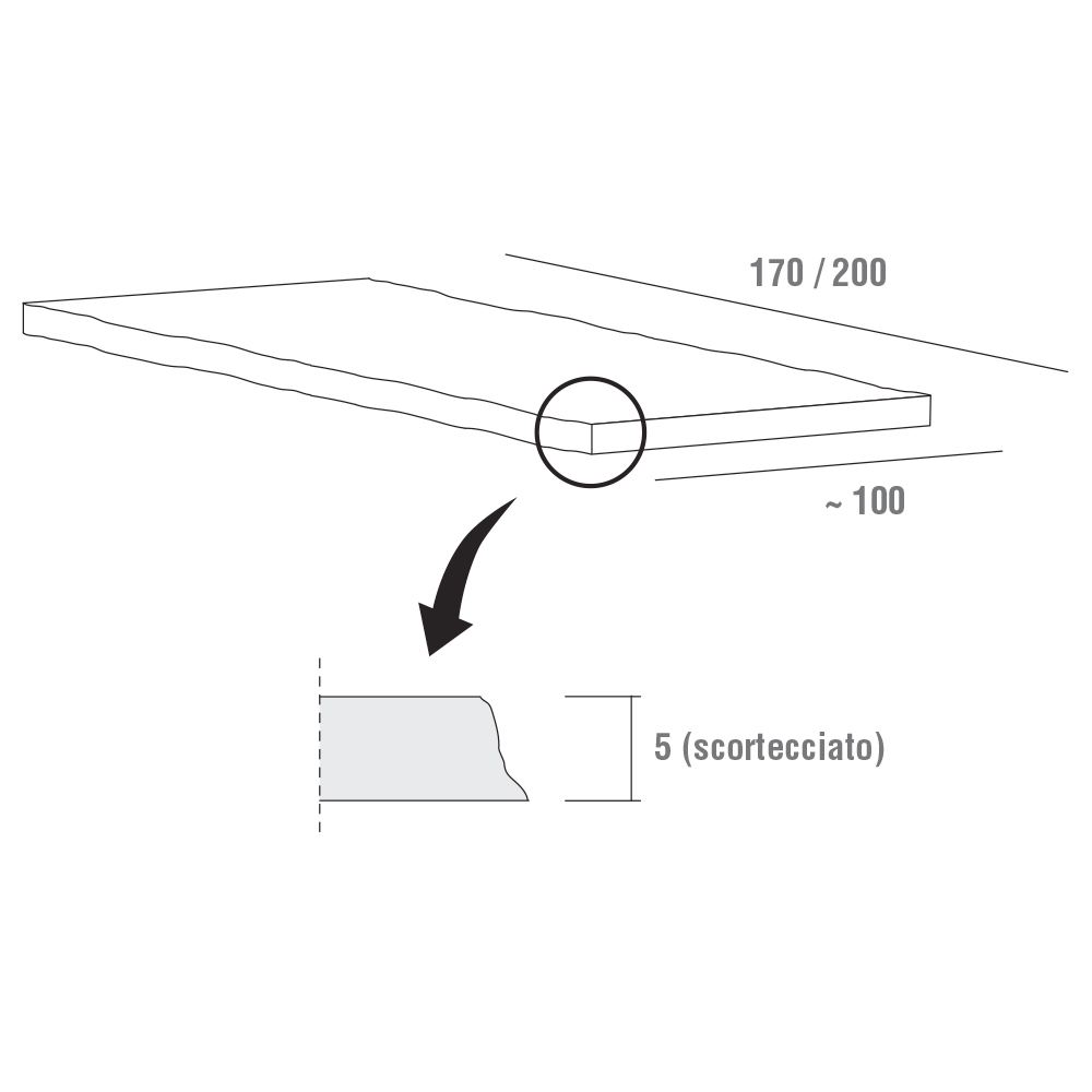 Tavolo da pranzo con piano in legno scortecciato Made in Italy, alta qualità.