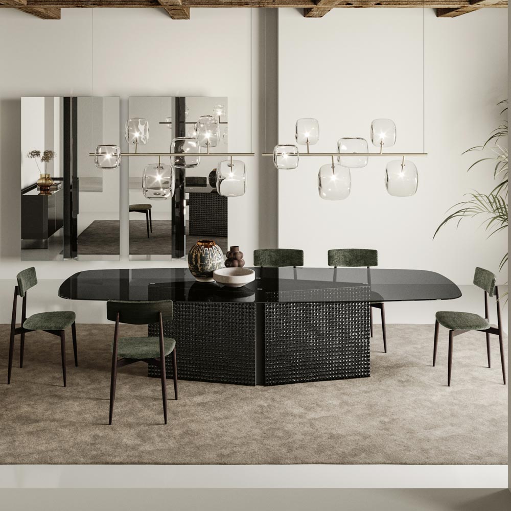 Adatto per ambienti moderni e minimalisti, questo tavolo è ideale per coloro che desiderano fare una dichiarazione di stile nei loro spazi abitativi. Perfetto per ospitare cene eleganti o come centro di conversazione in uno spazio ufficio, questo tavolo combina la bellezza del design moderno con la praticità necessaria per la vita quotidiana.
