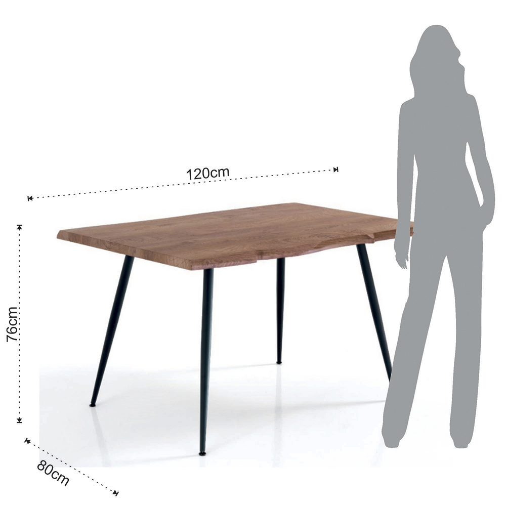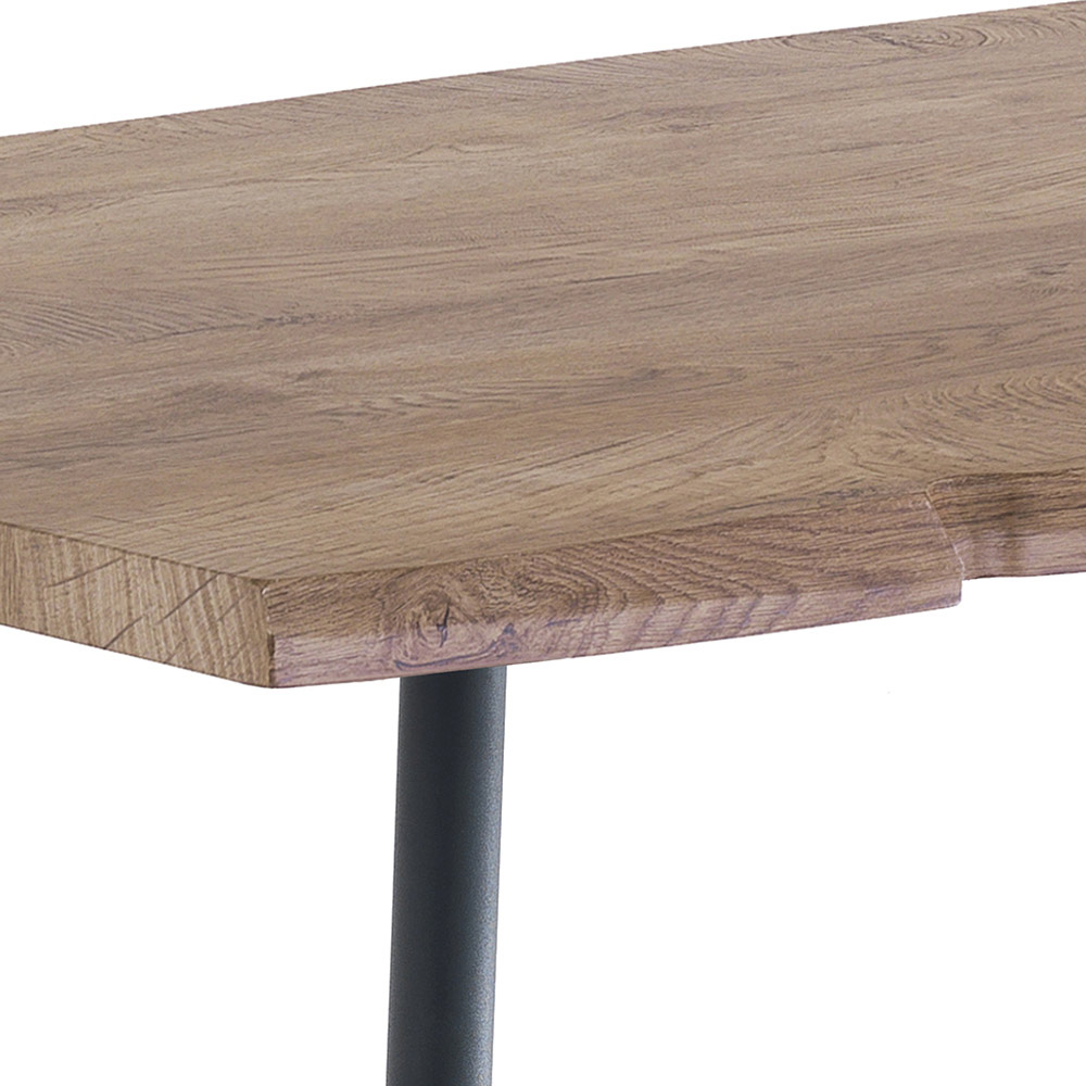 Tavolo da pranzo con piano in mdf rivestito in melaminico finitura quercia (sp. 3,3cm) e gambe con piede regolabile realizzate in acciaio verniciato nero opaco. Un design minimale e moderno pensato per arredare in maniera essenziale qualsiasi spazio living portando con sè funzionalità ed eleganza. L'accostamento di finiture e materiali scelti arricchisce il prodotto di personalità e gli consente di assicurare solidità, stabilità e un'eccellente durata nel tempo. Il risultato è perciò un tavolo da pranzo all'avanguardia caratterizzato da una spiccata versatilità d'uso capace di completare con personalità ogni situazione domestica o contract.