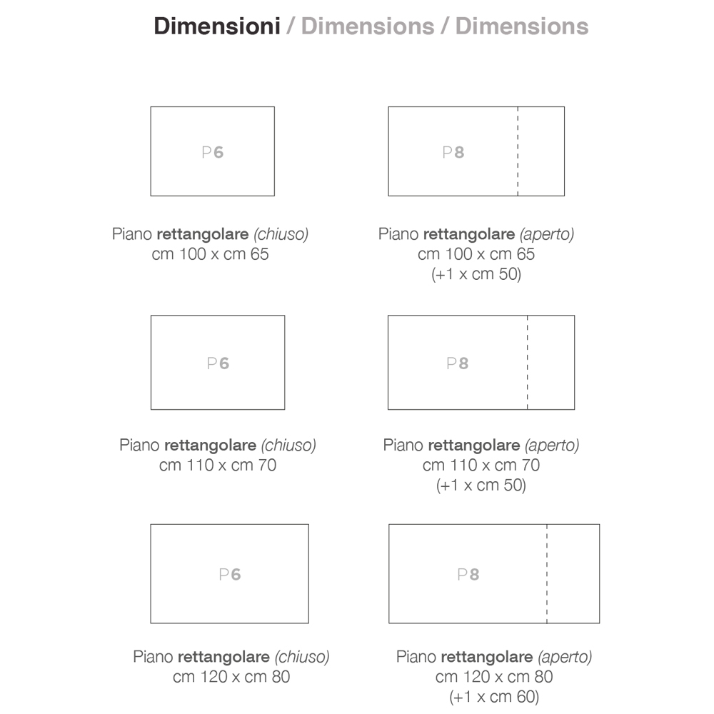 - L 110 (160) X P 70 X H 77 con un'allungha da 50 cm;