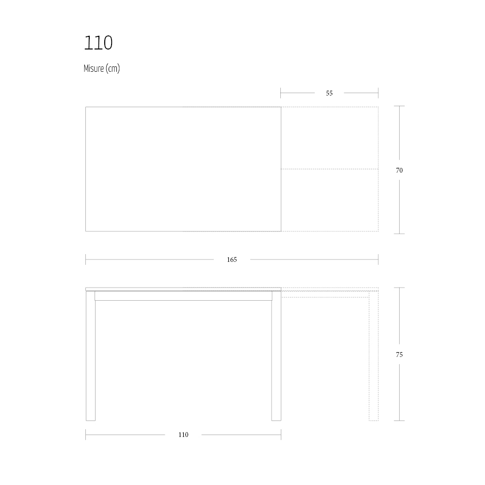 - L 110(165) X P 70 H 75 cm - allunga da 55 cm;
