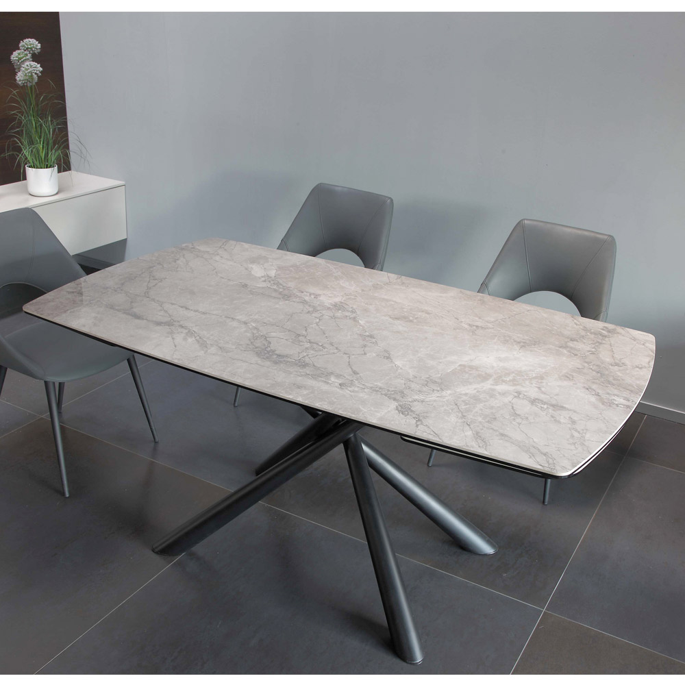 Tavolo da soggiorno allungabile realizzato in vetroceramica e metallo