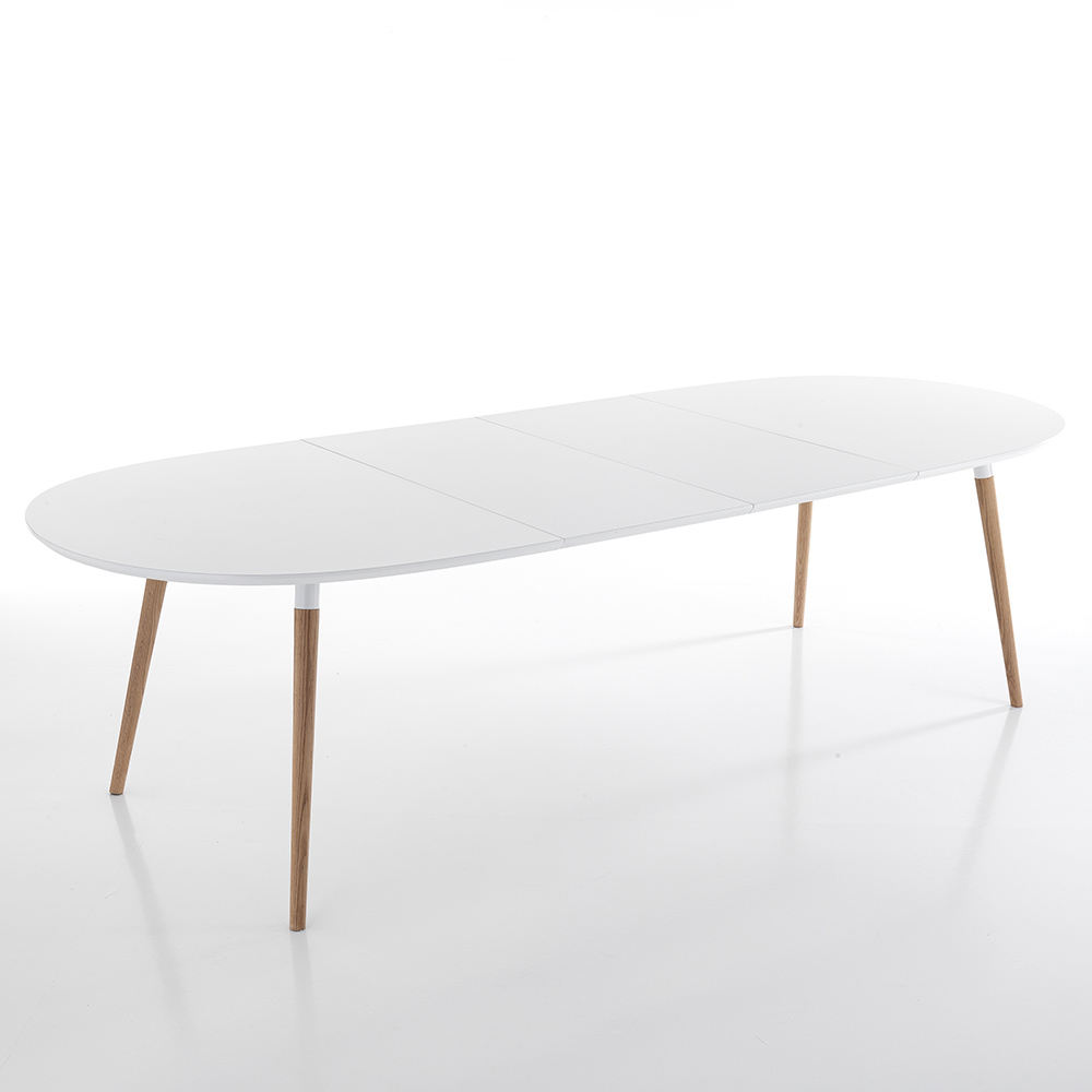 Tavolo da pranzo allungabile in mdf bianco opaco e legno massello.