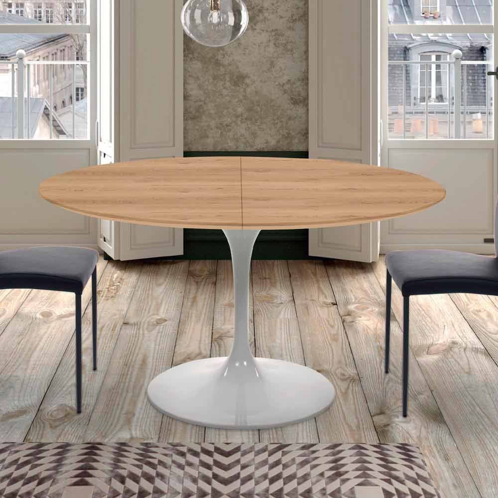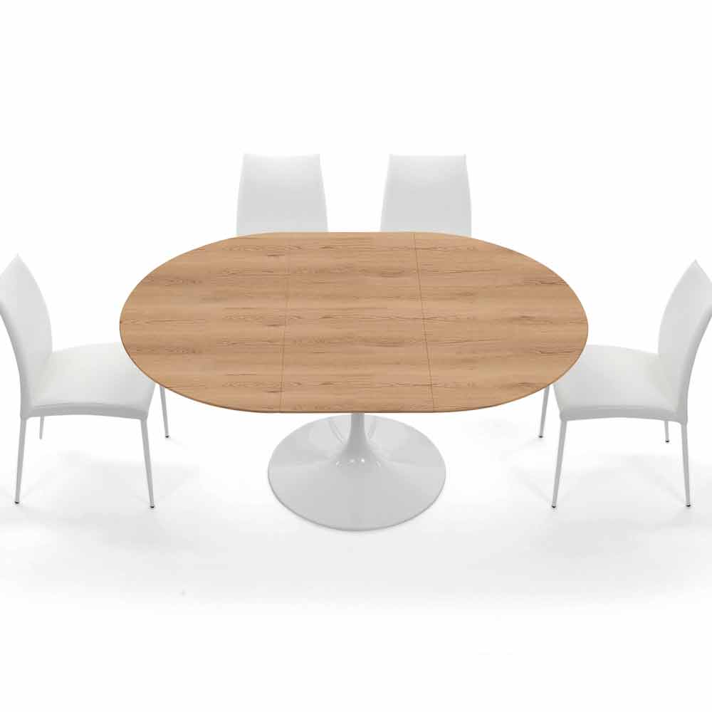 piano allungabile il quale, grazie ad un'allunga esterna da 50 cm, offre la possibilità di accogliere fino a 8 persone tornando ad occupare uno spazio più contenuto una volta richiuso. Il tocco che caratterizza il tavolo rendendolo unico e donado un