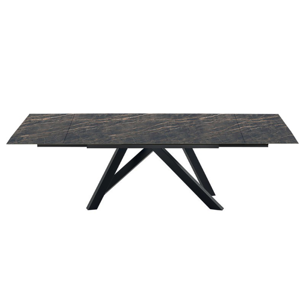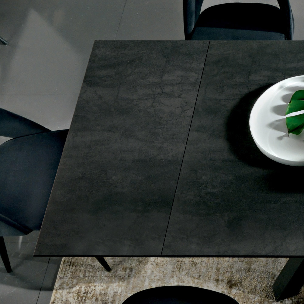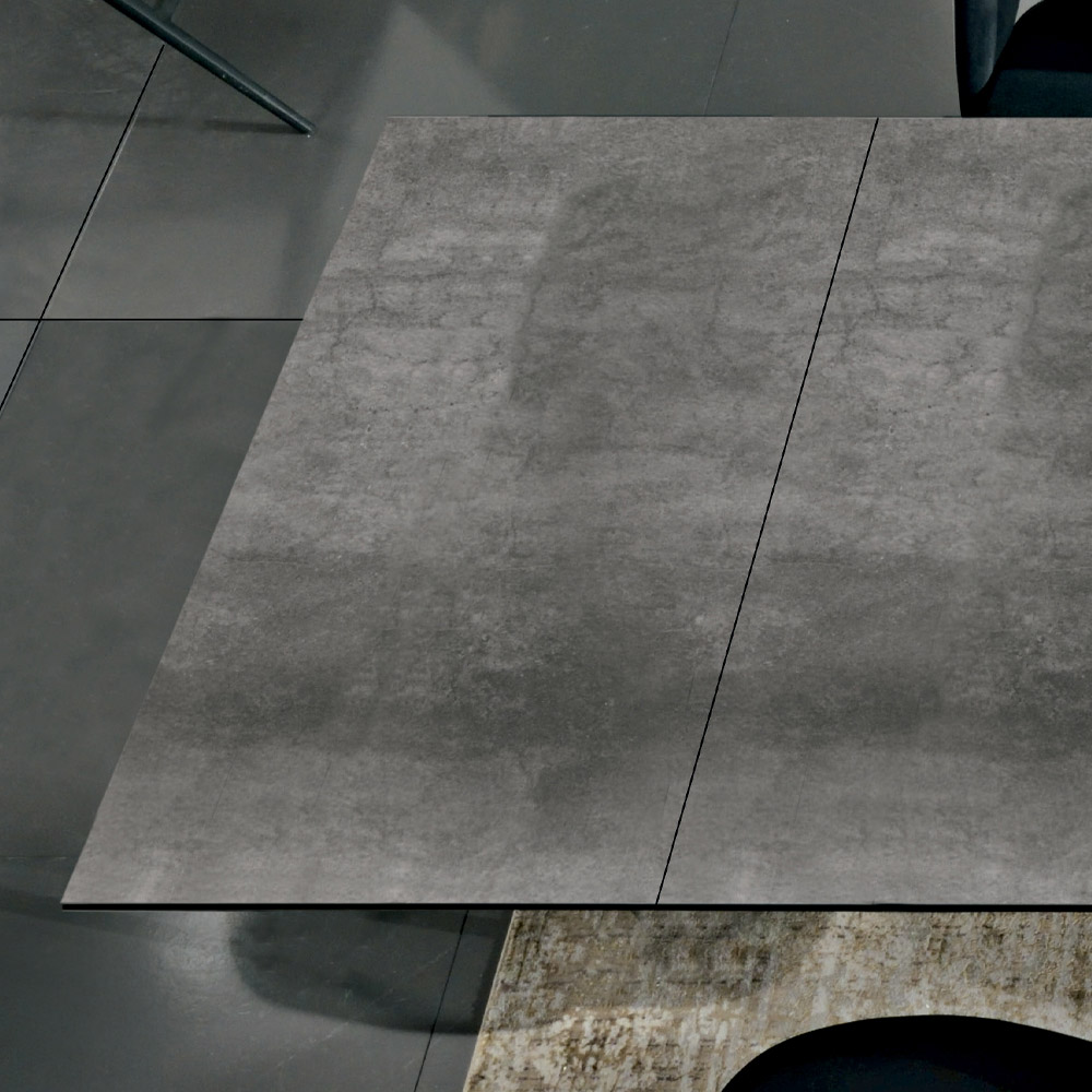 Tavolo da pranzo con piano allungabile in Ceramica laminam e base in acciaio, articolo pregiato Made in Italy.