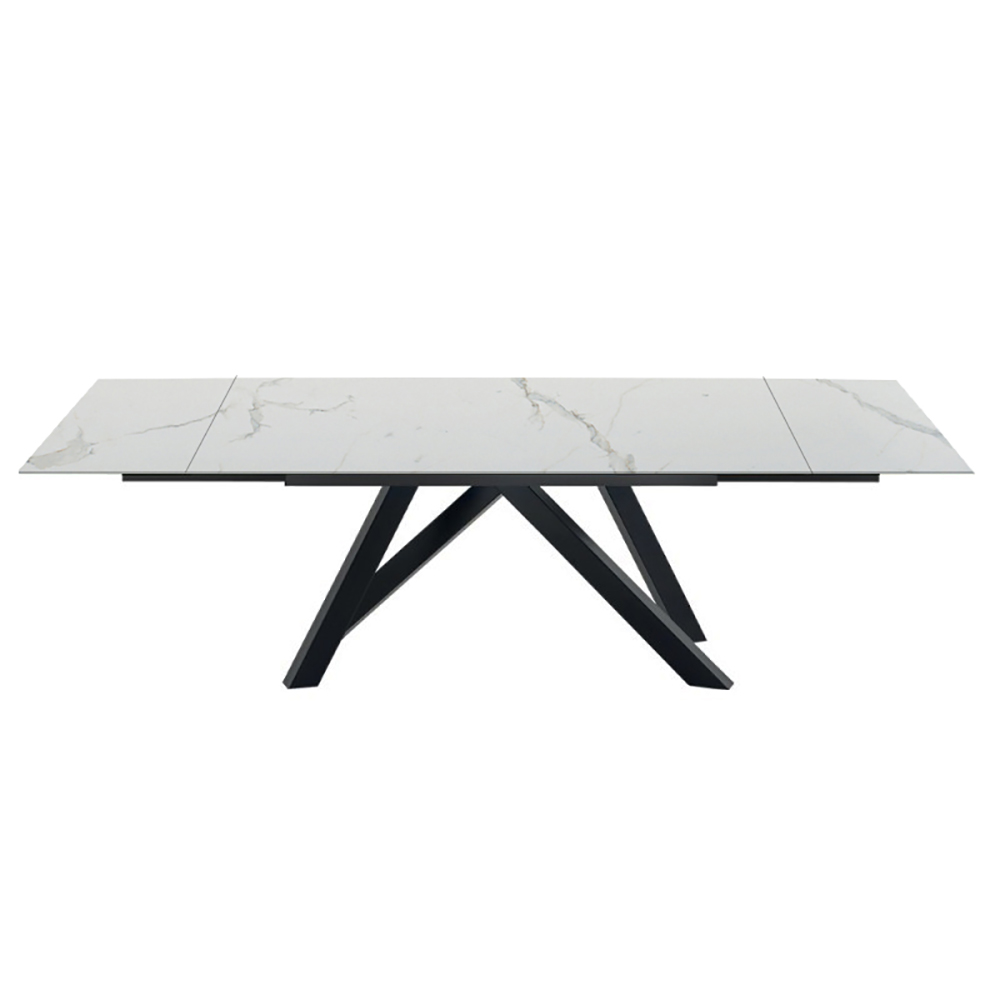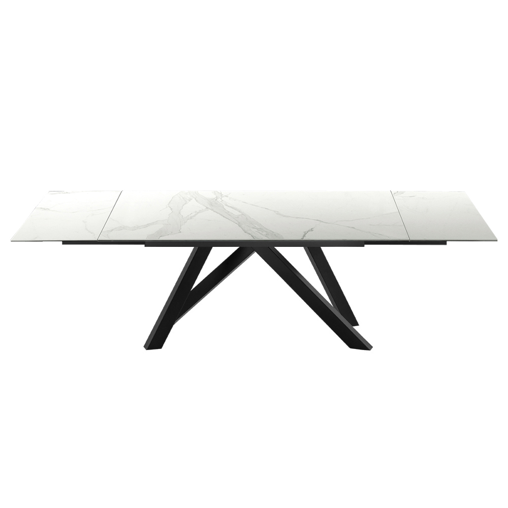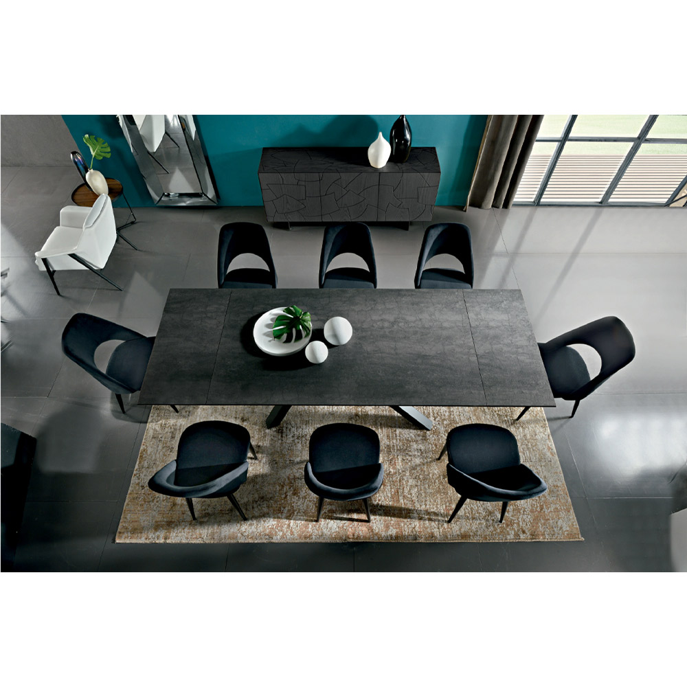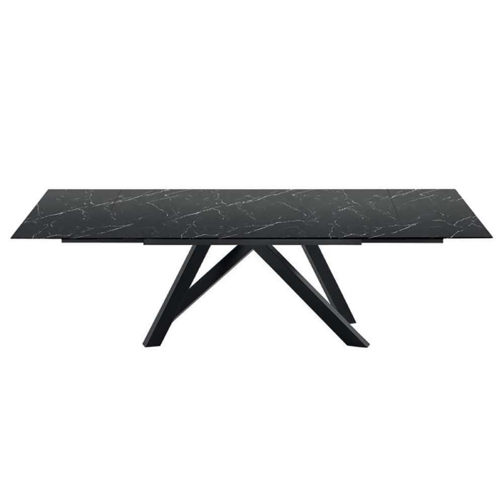 Tavolo da pranzo con piano allungabile in Ceramica laminam e base in acciaio, articolo pregiato Made in Italy.