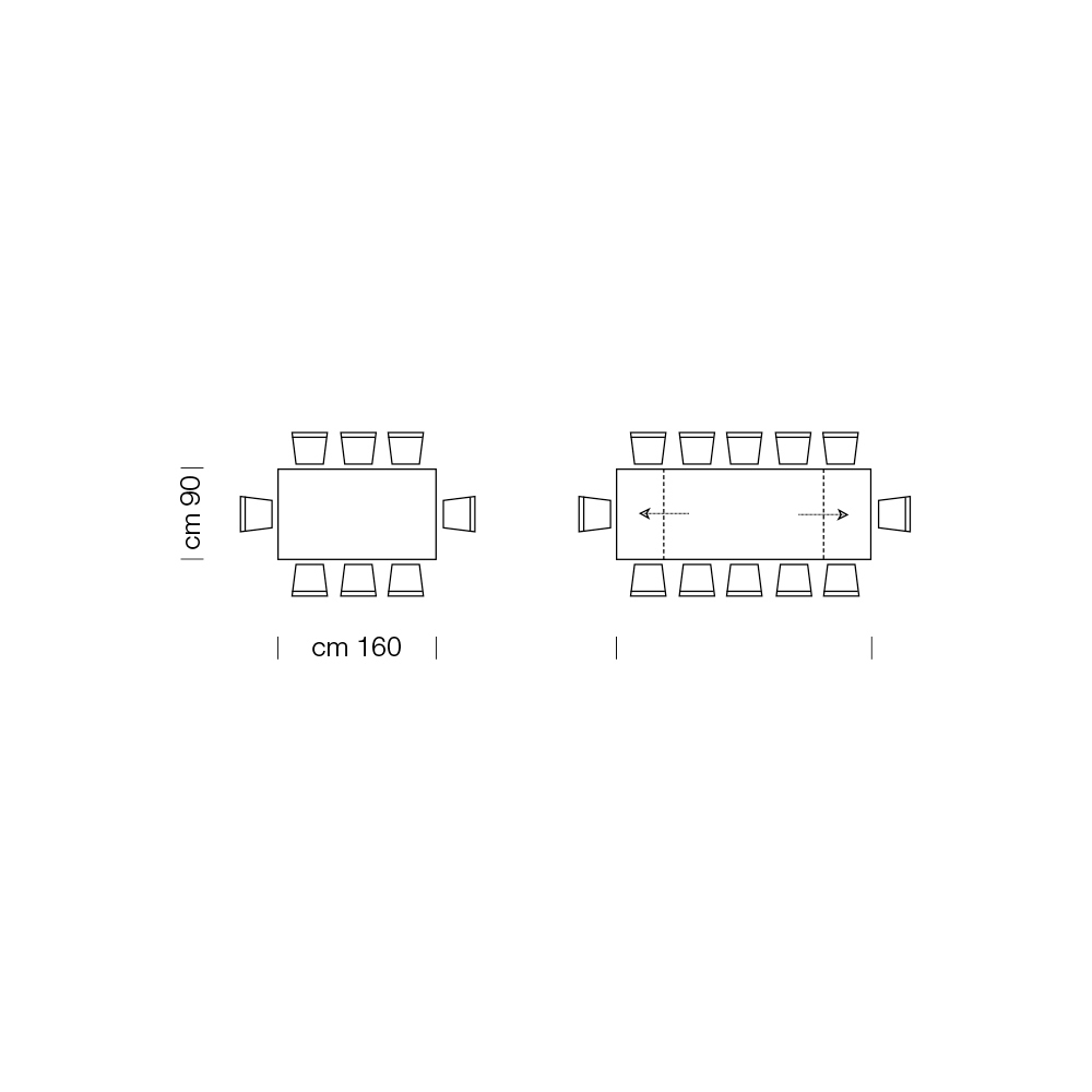 - L 160 (238) x P 90 x H 77,7 cm 12 posti (sp.10mm);