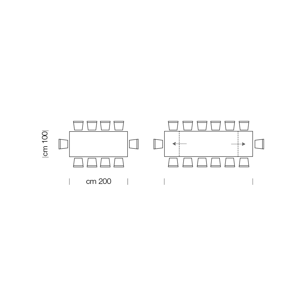 - L 200 (278) x P 100 x H 77,7 cm 14 posti (sp.12mm).