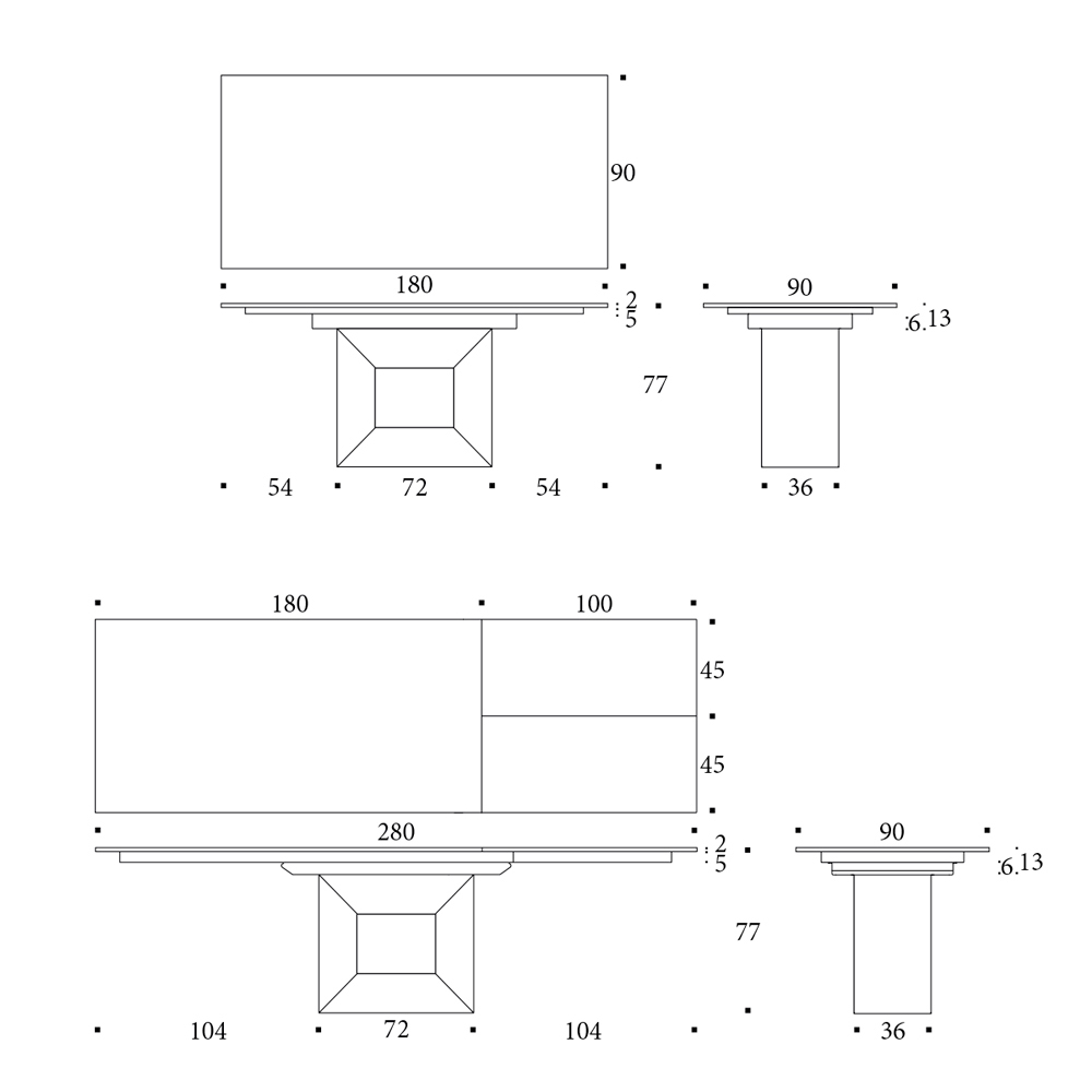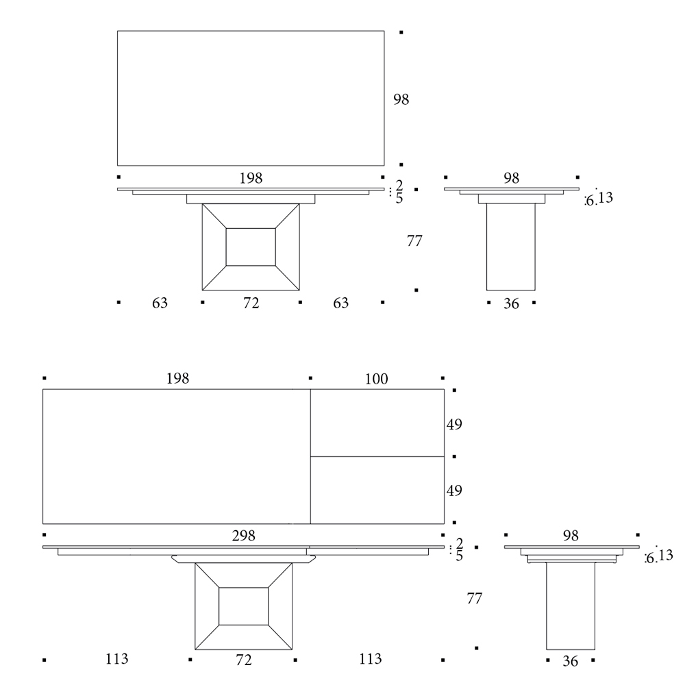 Il piano è allungabile struttura allungabile metallo, meccanismo telescopico, apertura sincronizzata prolunga interna a libro. Prolunga continuità di vena.