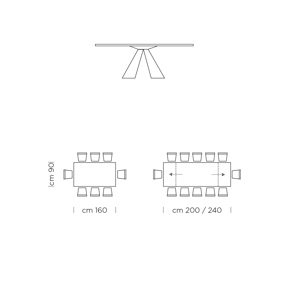 - L 160/240 x P 90 x H 75,5 cm 12 posti (2 allunghe da 40 cm);