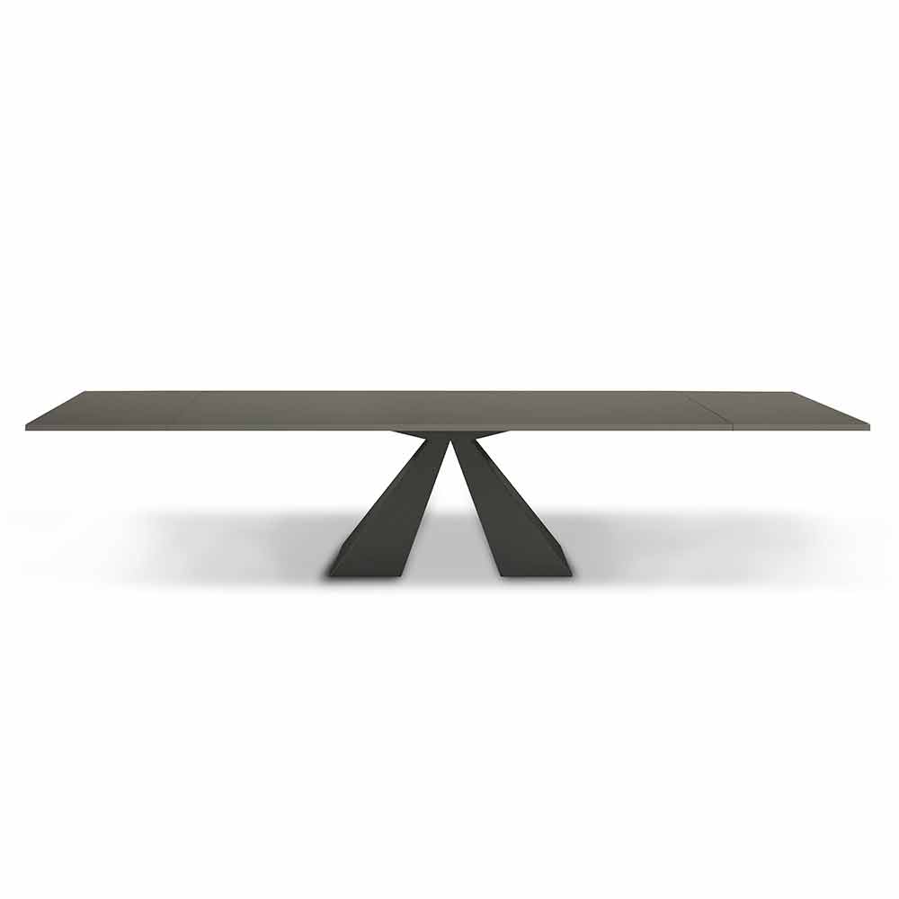 Tavolo da pranzo con piano allungabile in fenix e base in acciaio Made in Italy, di lusso.