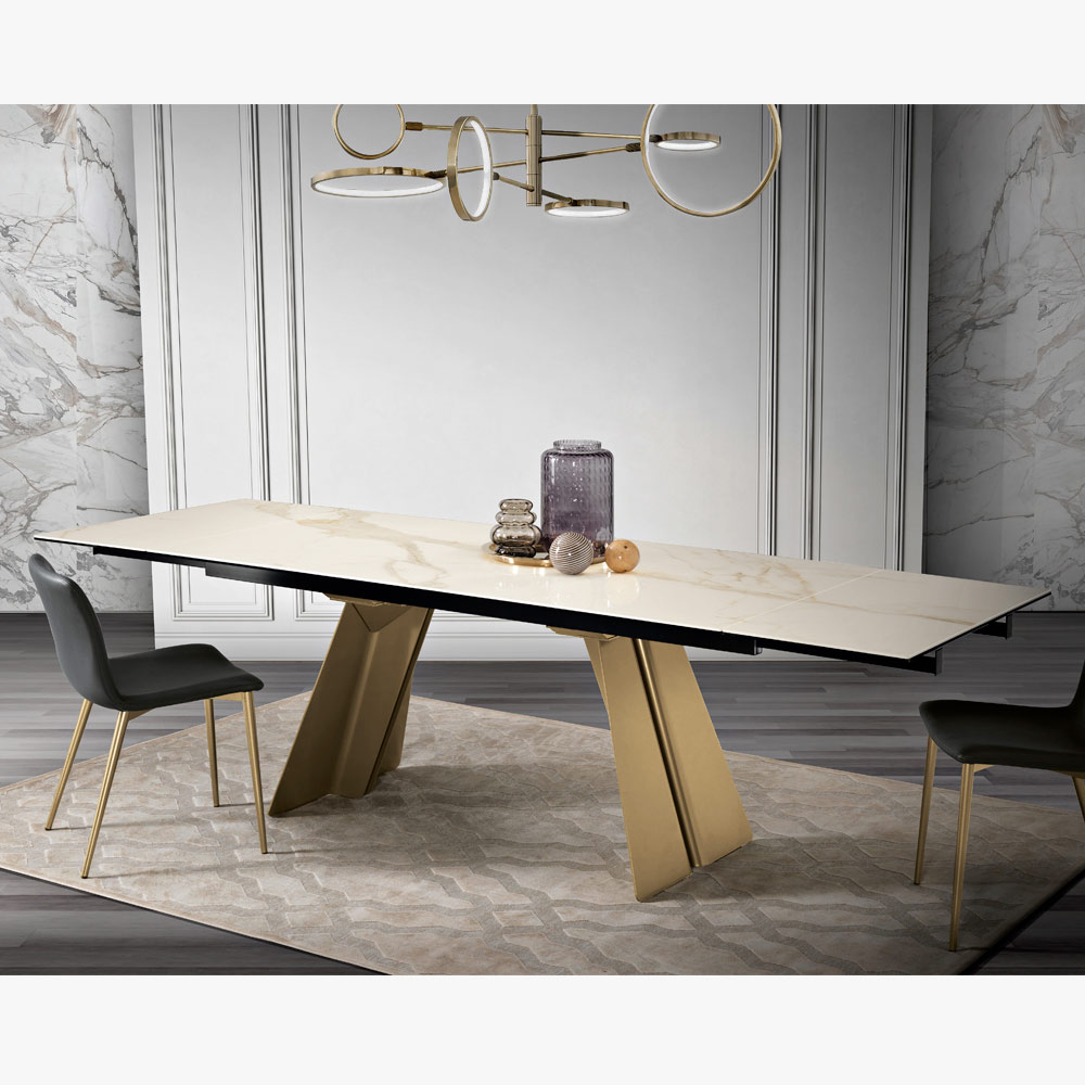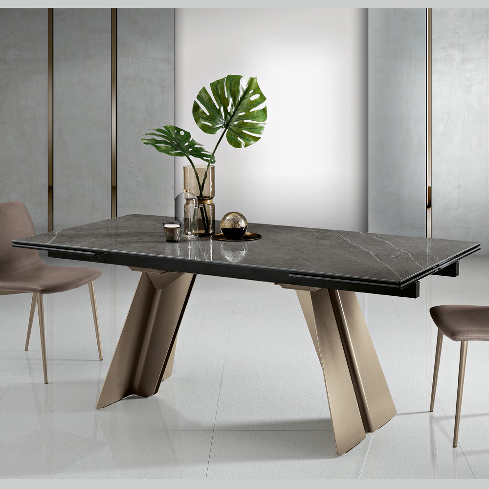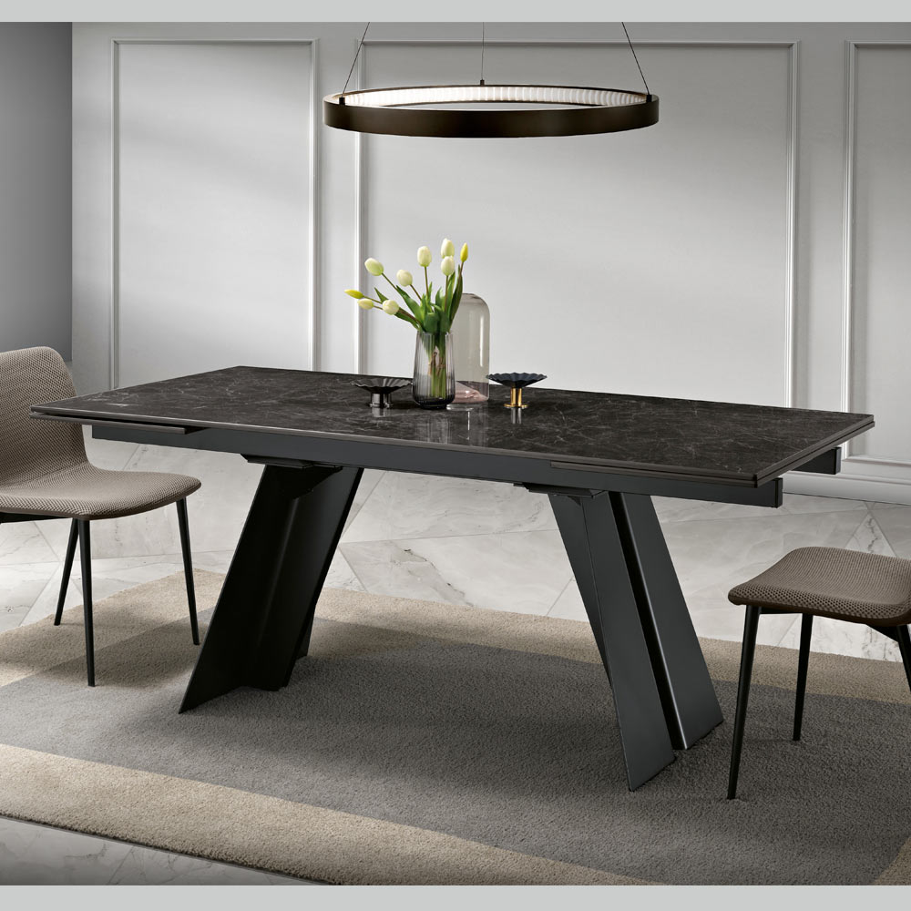 Tavolo allungabile da pranzo in vetroceramica e metallo Made in Italy