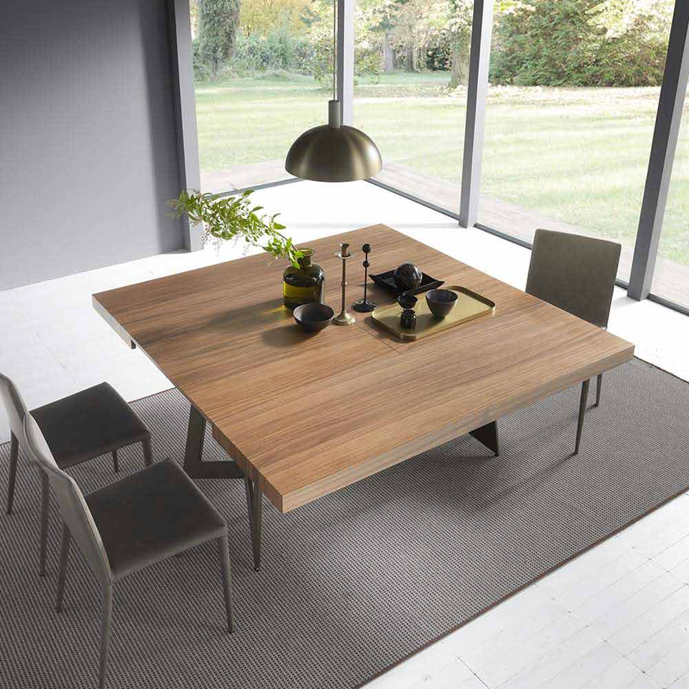 La sua peculiare caratteristica consiste nella modalità con cui si allarga da tavolo rettangolare a quadrato per ospitare da 4 ad 8 persone.