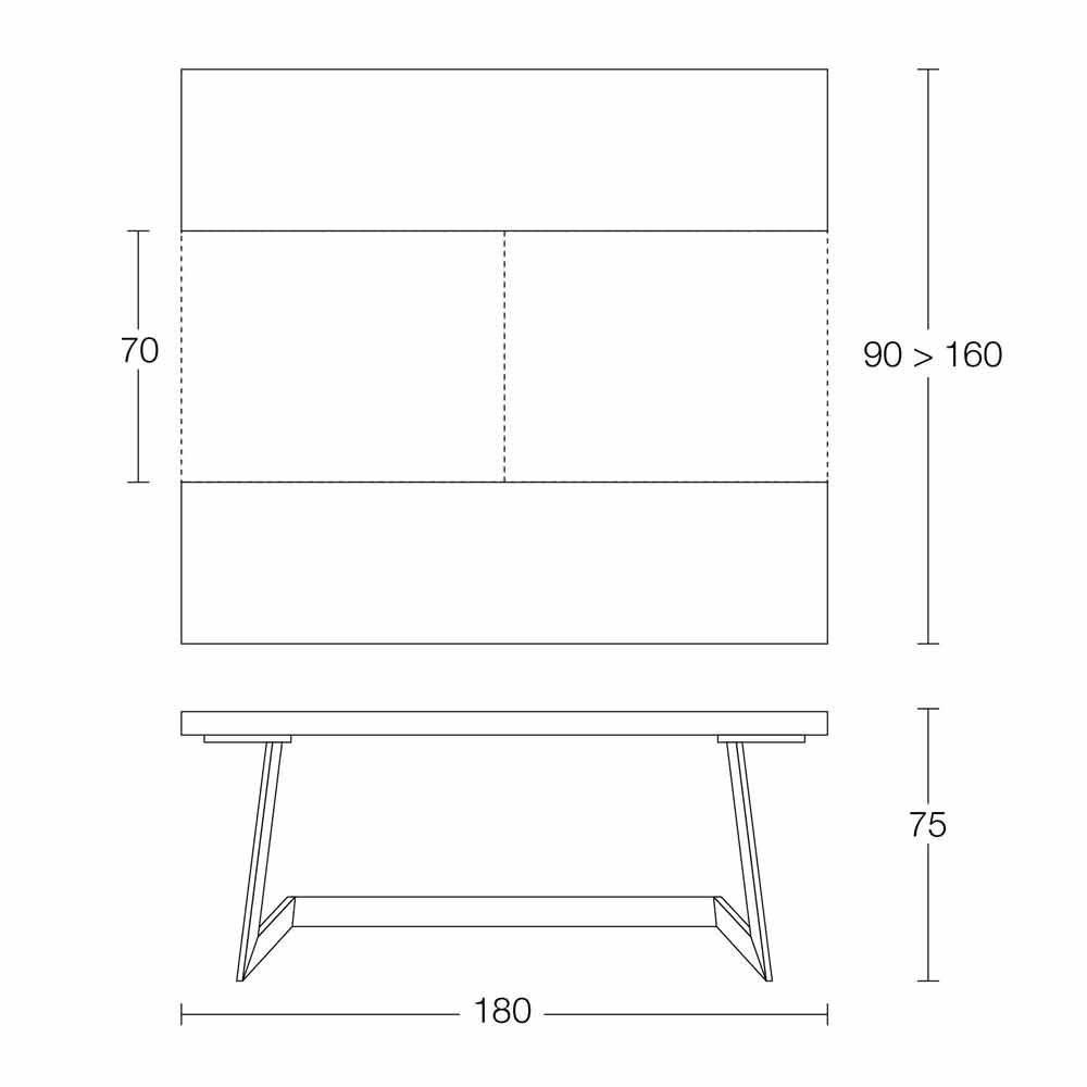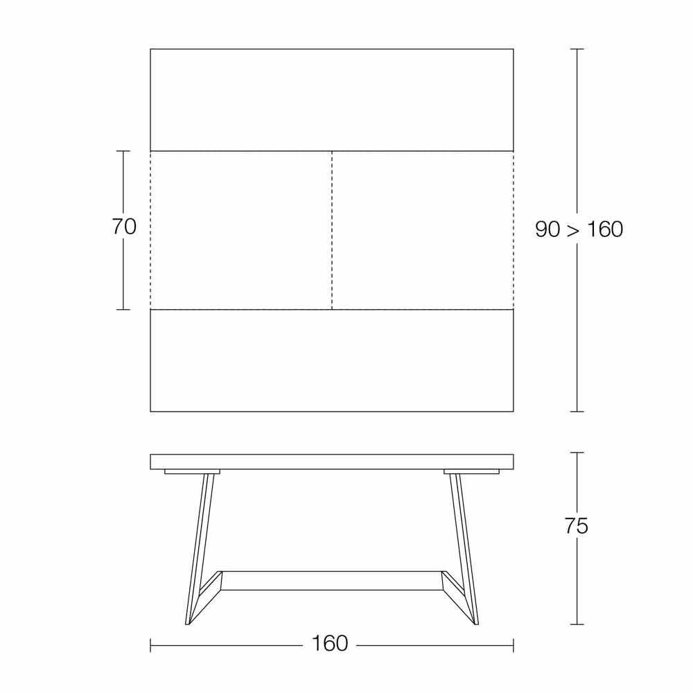 NB: in fase di apertura del tavolino è necessario sollevare l'allunga, posizionarla al livello del piano e, solo successivamente, aprirla.