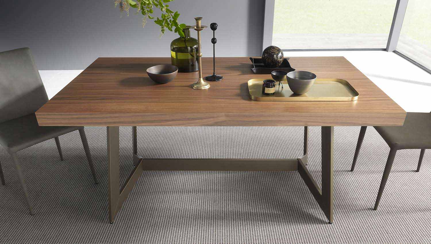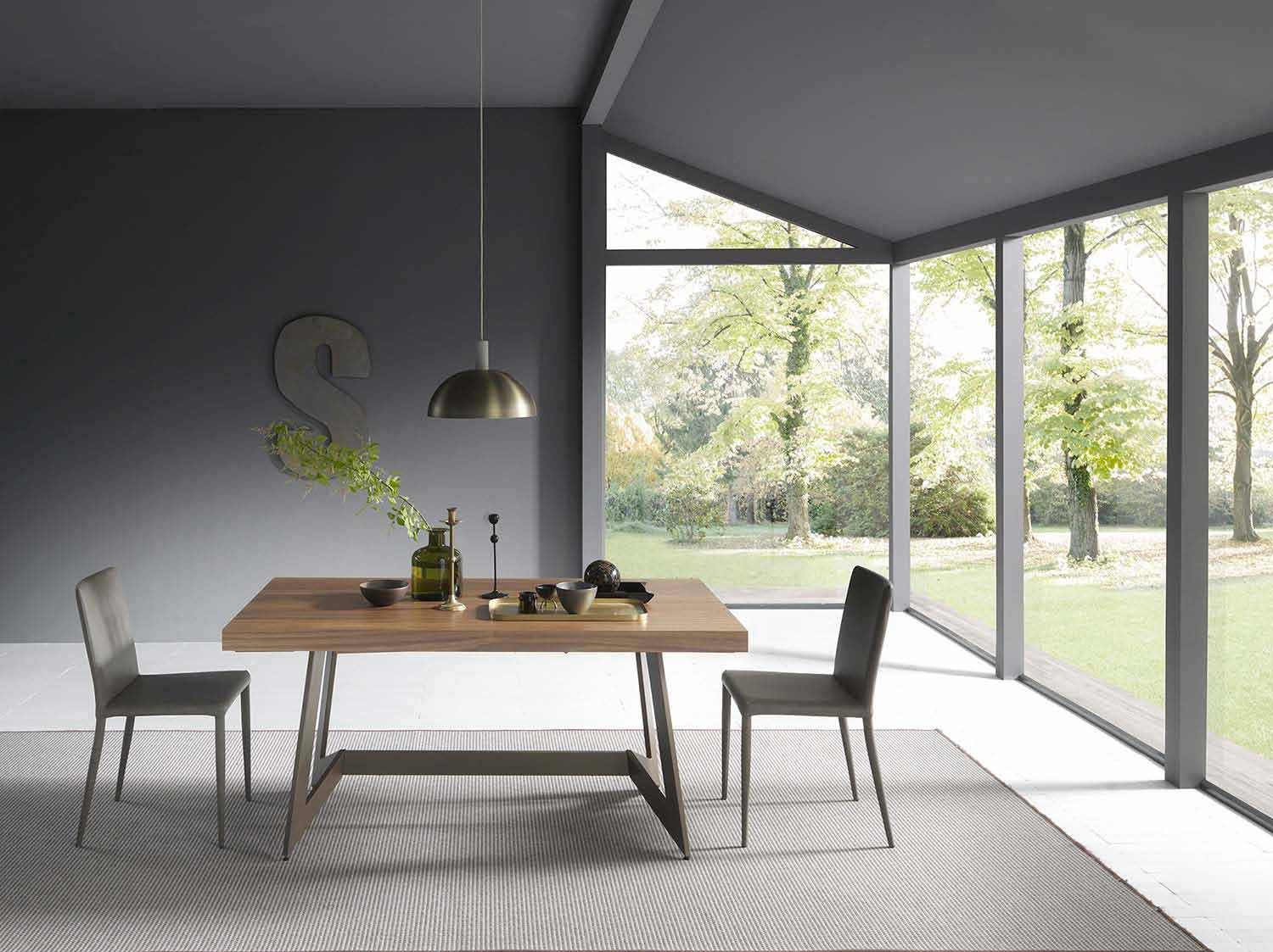Tavolo da pranzo allungabile con piano in legno e struttura in metallo Made in Italy.