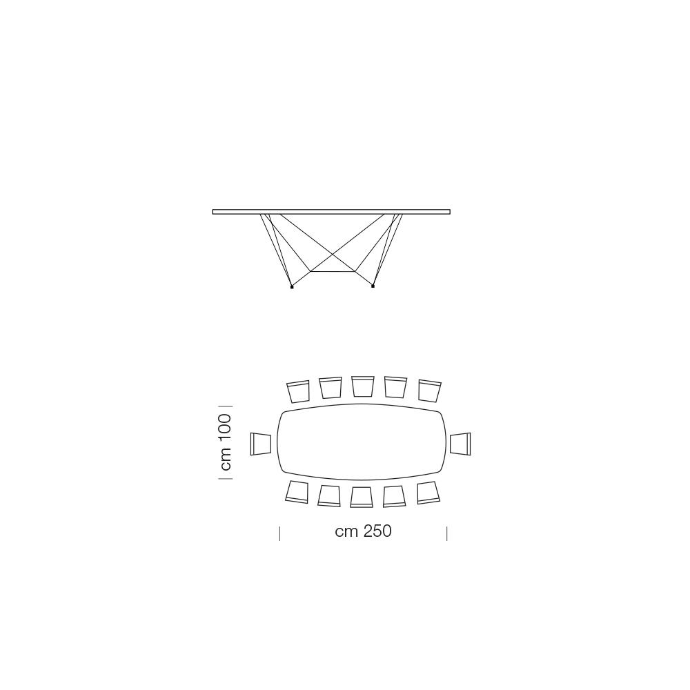 - L 250 x P 100 x H 73,3 cm (12 posti);