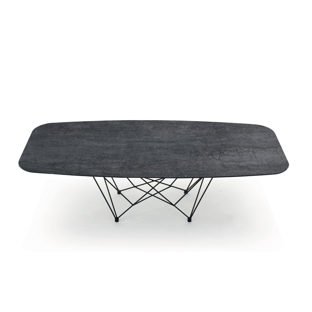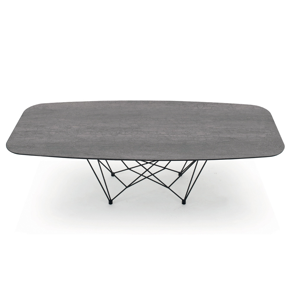 Tavolo da pranzo a botte in Ceramica laminam e acciaio nero Made in Italy.