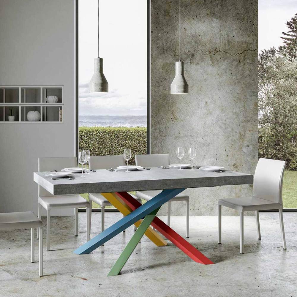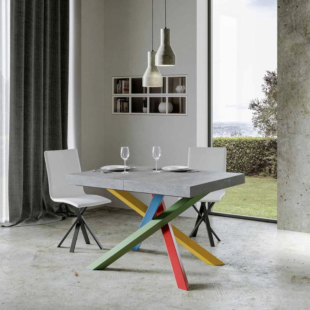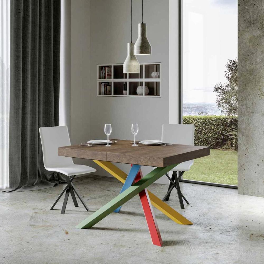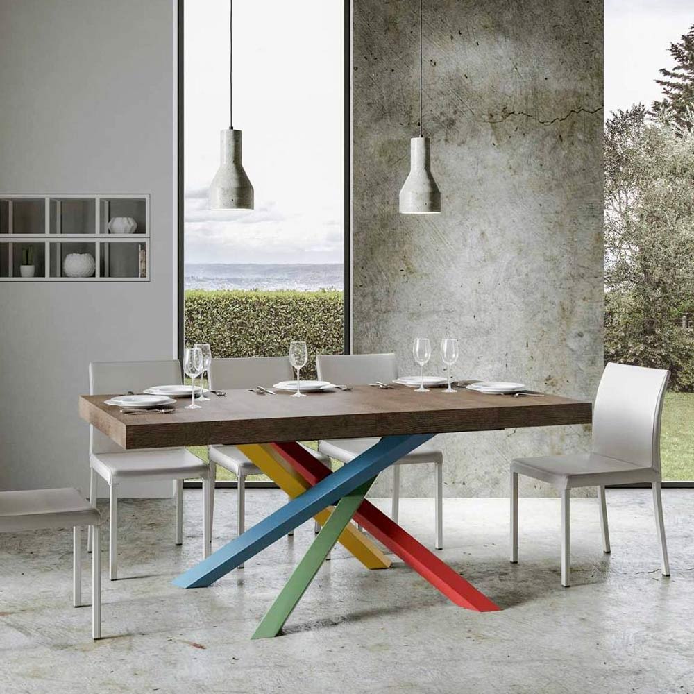 Scoprite il tavolo allungabile, un capolavoro di design moderno che si distingue per la sua silhouette unica e la sua funzionalità versatile. Il piano in legno esalta la luminosità degli spazi, offrendo una superficie liscia e robusta che invita all'uso quotidiano. La base del tavolo è un vero e proprio spettacolo geometrico, con gambe incrociate che si intrecciano in un gioco di colori. La combinazione proposta è : Gamba 1: Rosso Carminio (RAL 3002). Gamba 2: Verde Giallastro (RAL 6018). Gamba 3: Blu Distante (RAL 5023). Gamba 4: Giallo Segnale (RAL 1003). I colori RAL sono opachi. Questa combinazione non solo aggiunge un tocco di vitalità al design ma garantisce anche stabilità e resistenza. Il meccanismo di estensione del tavolo è tanto semplice quanto ingegnoso, permettendo di trasformare questo elegante mobile da un pratico tavolo per quattro a un'accogliente area per ospitare cene e riunioni più numerose.