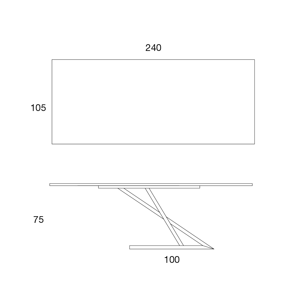 La peculiarità è data dall'inconfondibile forma a zeta della struttura del tavolo che unisce il complemento all'ambiente in cui è collocato.