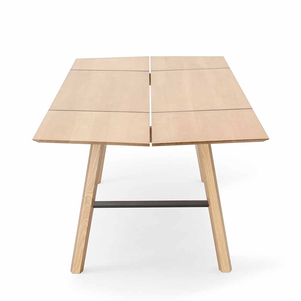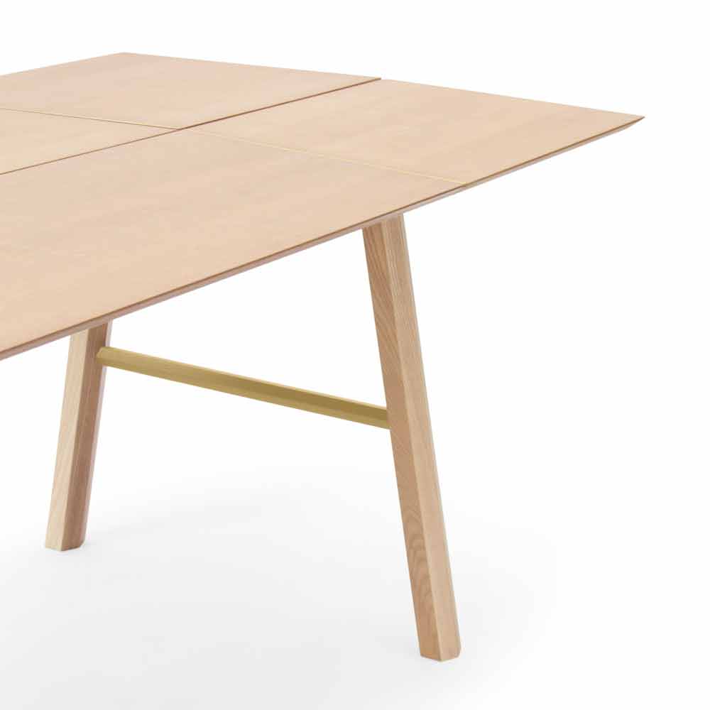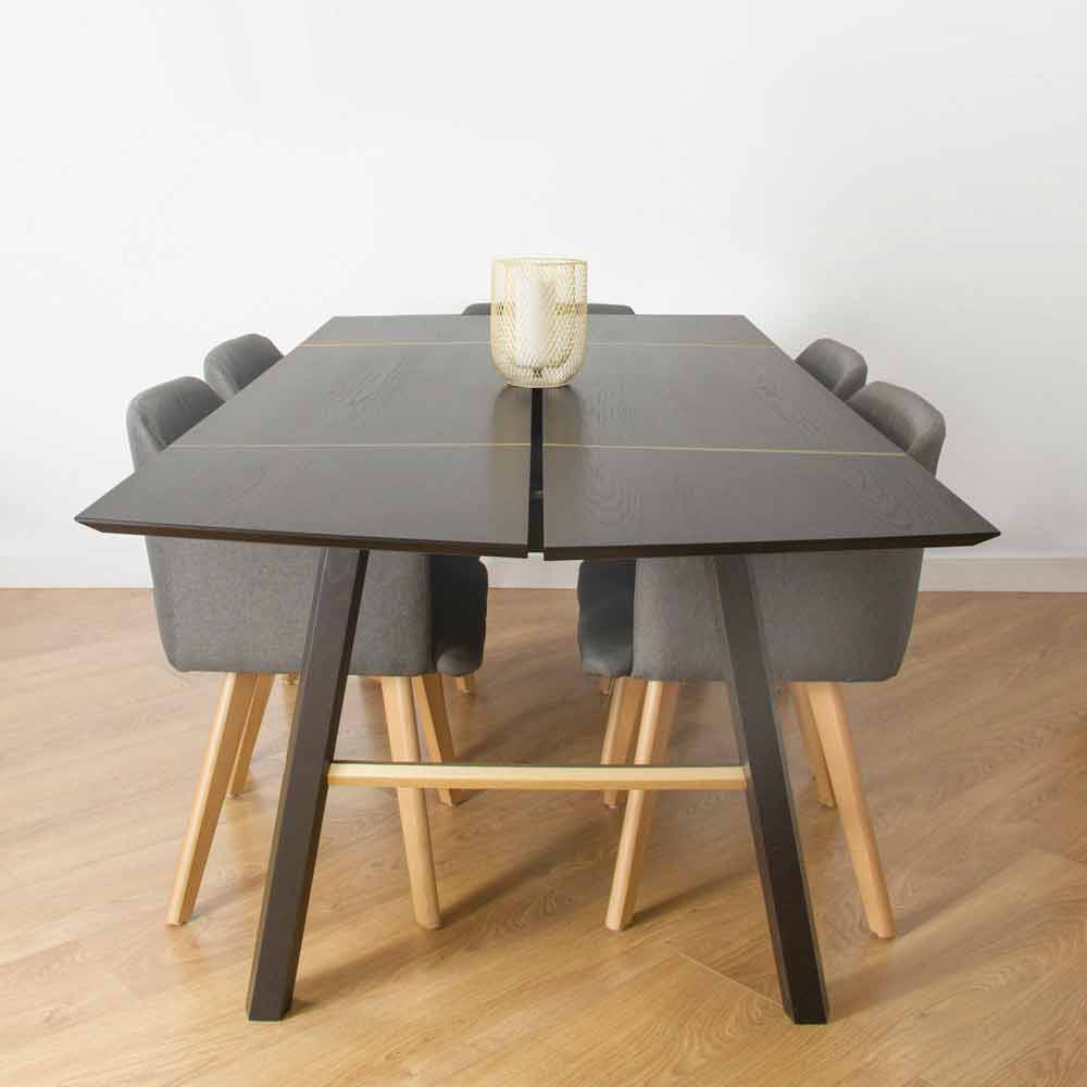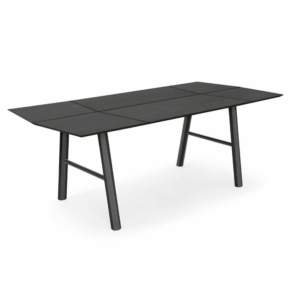Tavolo da pranzo moderno in legno massello di frassino con piano impiallacciato.