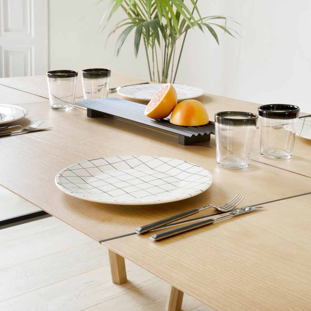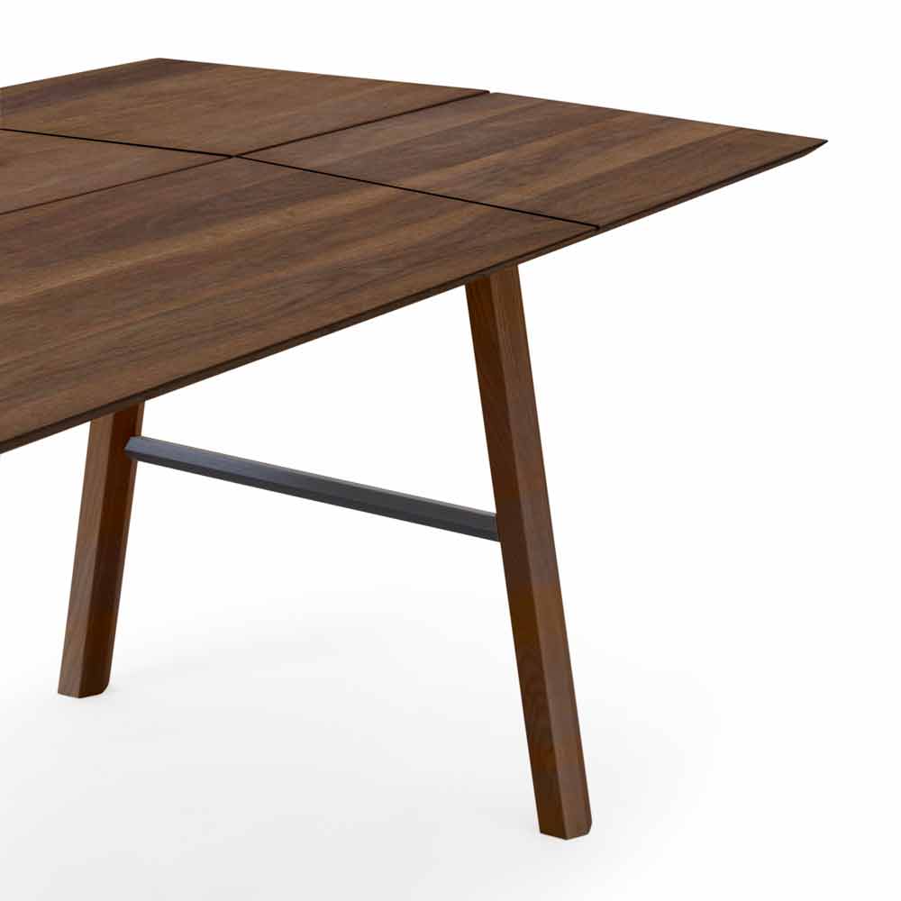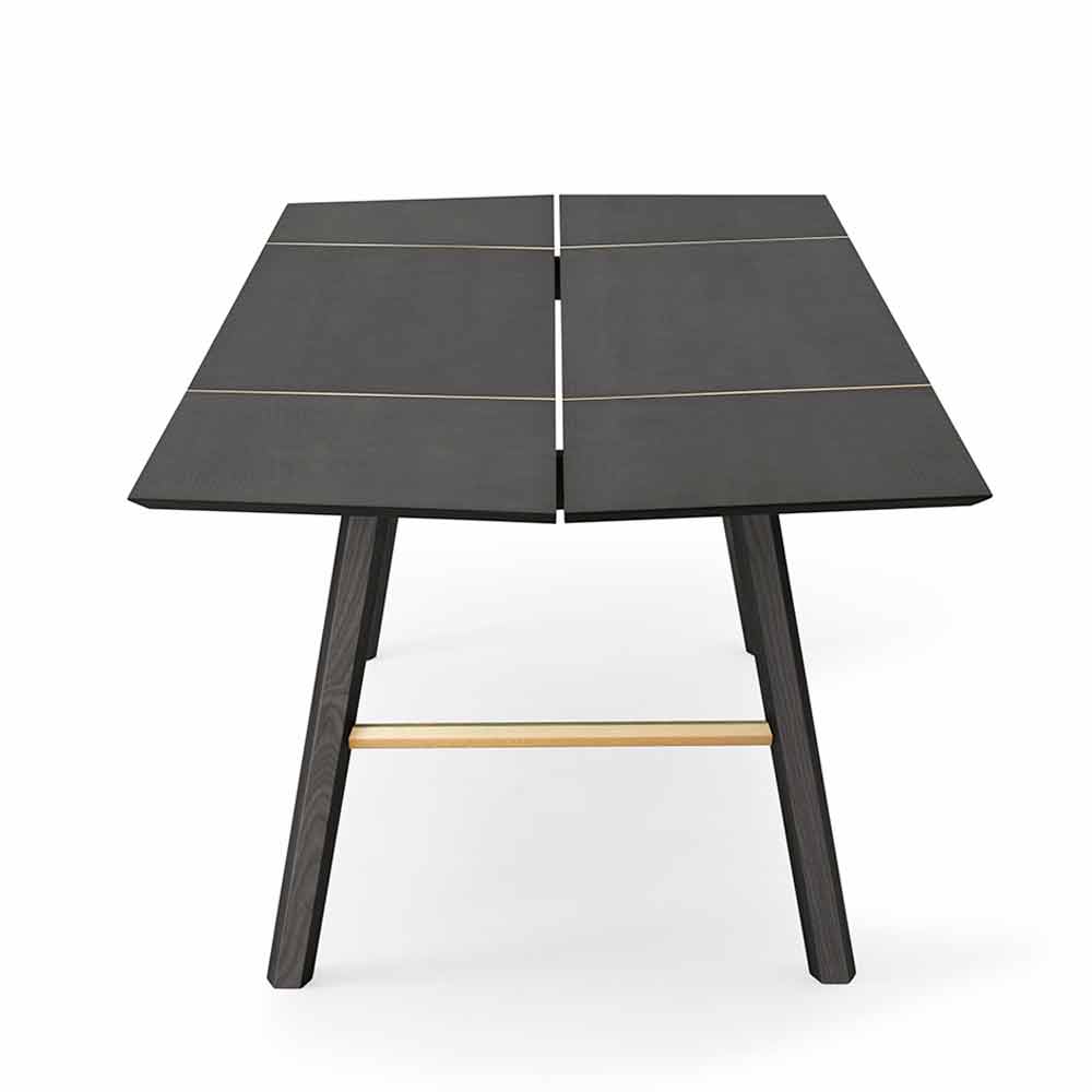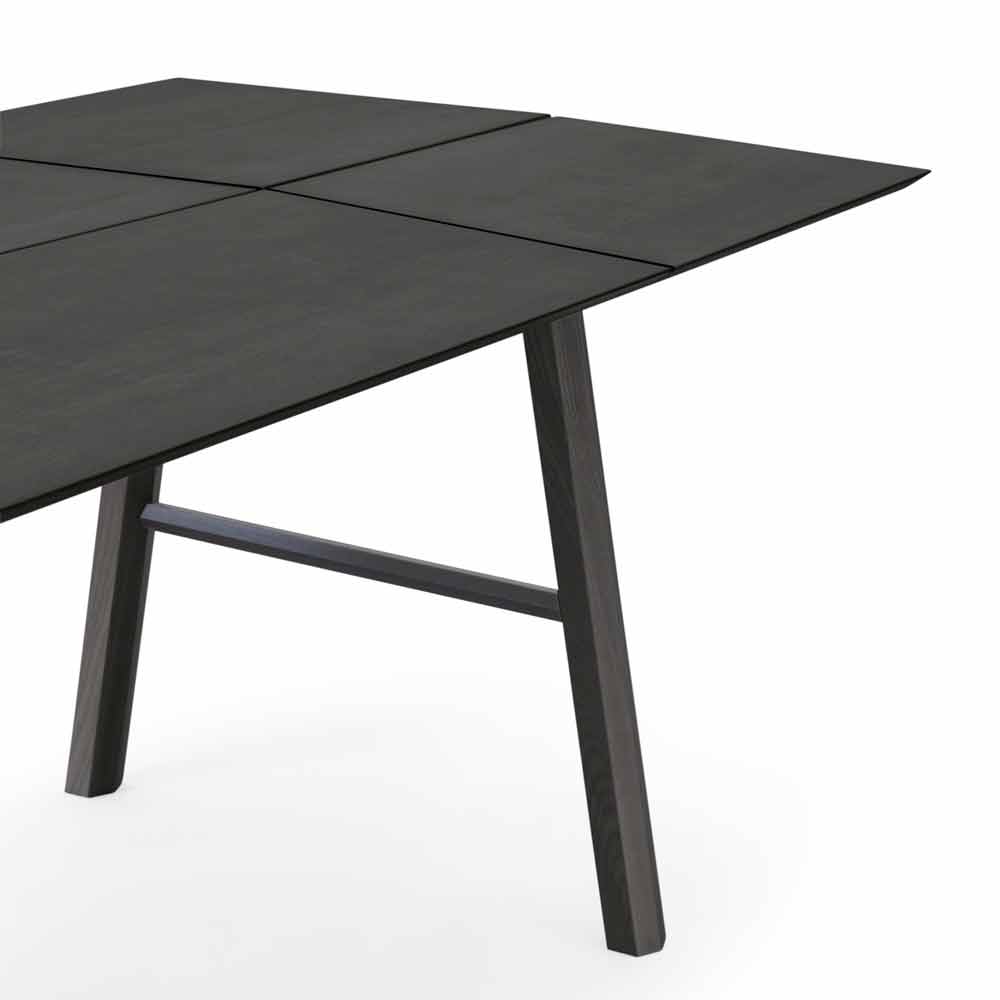 Tavolo da pranzo moderno in legno massello di frassino con piano impiallacciato.