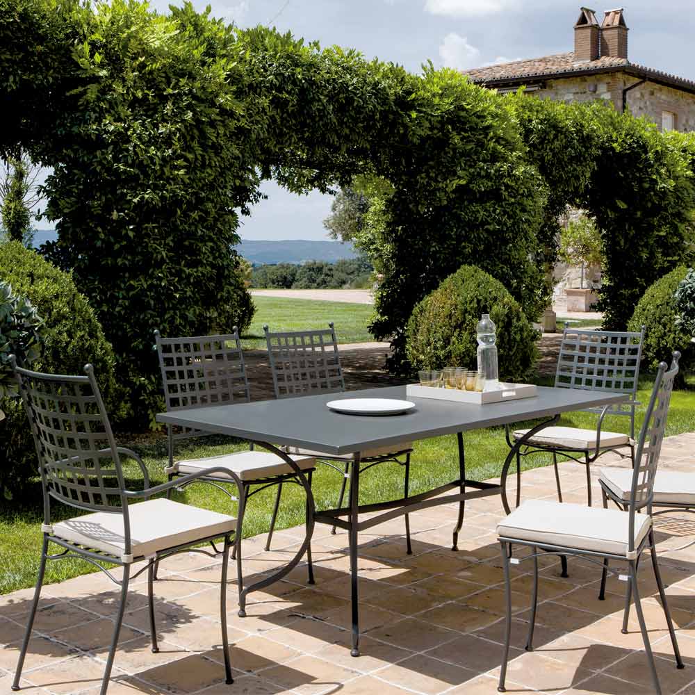 Questo tavolo da esterno è pensato per essere un ottimo alleato per i pranzi o le cene negli ambienti outdoor infatti è estremamente resistente grazie alla qualità del suo materiale, relizzato al 100% in Italia. La sua struttura in acciaio è rafforzata mediante un processo di zincatura per renderle resistenti agli agenti corrosivi ed atmosferici. Lo stile senza tempo di questo tavolo è la più classica esaltazione dell'artigianato italiano perfettoper donare un tocco di classicità intramontabile agli ambienti outdoor come terrazzi, verande, giardini o piscine.