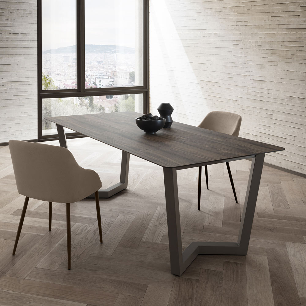 Tavolo da pranzo con gambe in metallo e piano in hpl stratificato Made in Italy.